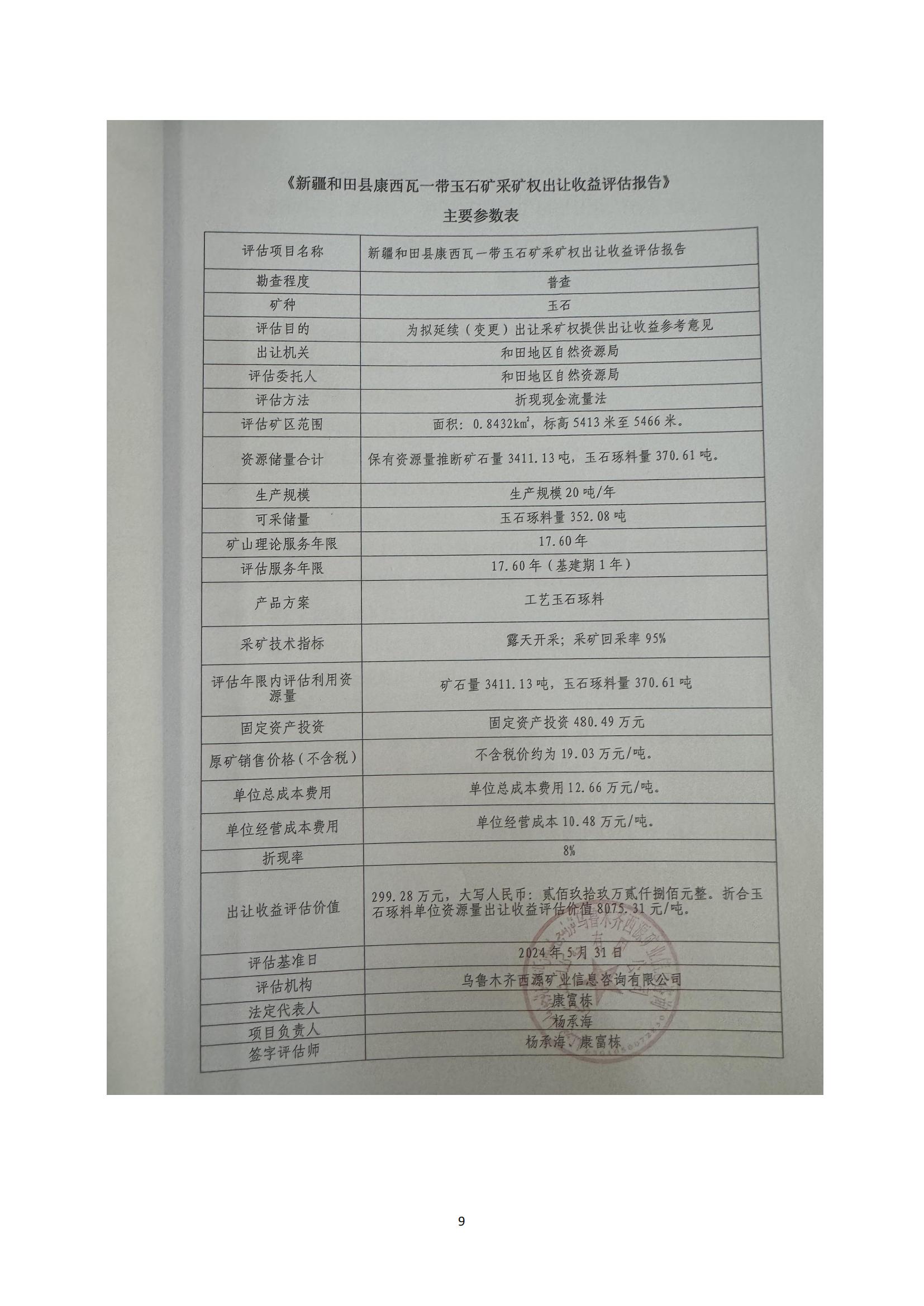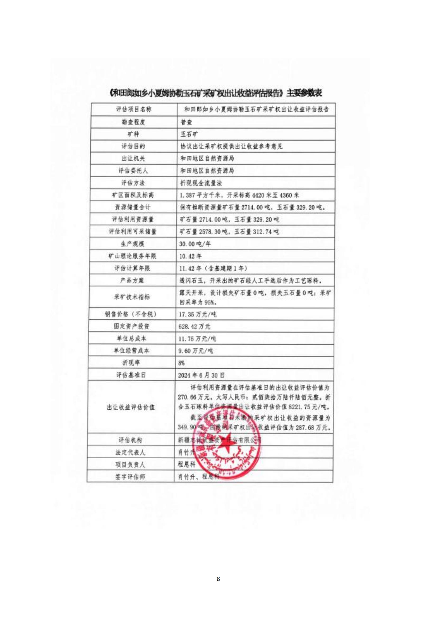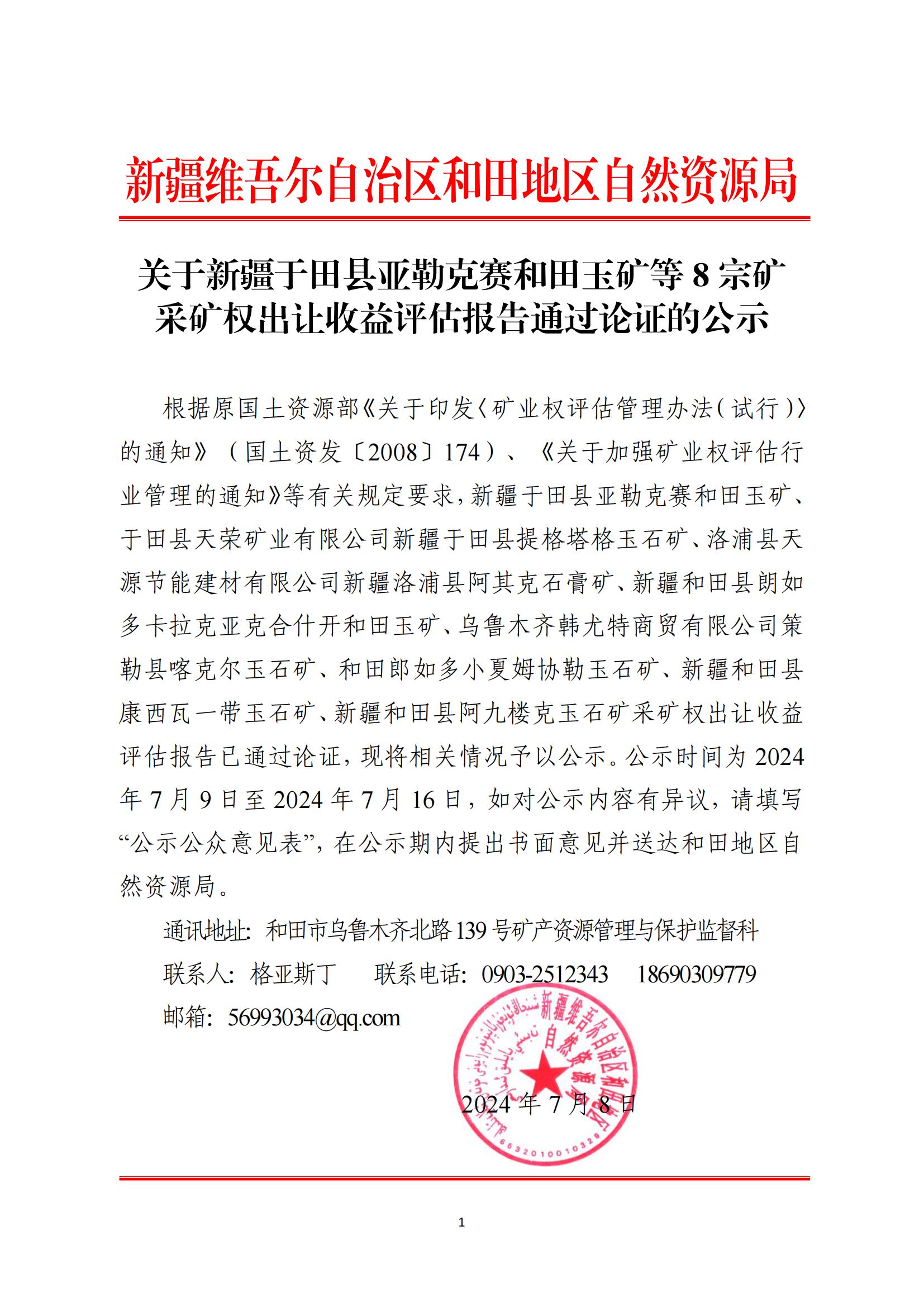 關(guān)于新疆于田縣亞勒克賽和田玉礦等8宗礦采礦權(quán)出讓收益評(píng)估報(bào)告通過(guò)論證的公示