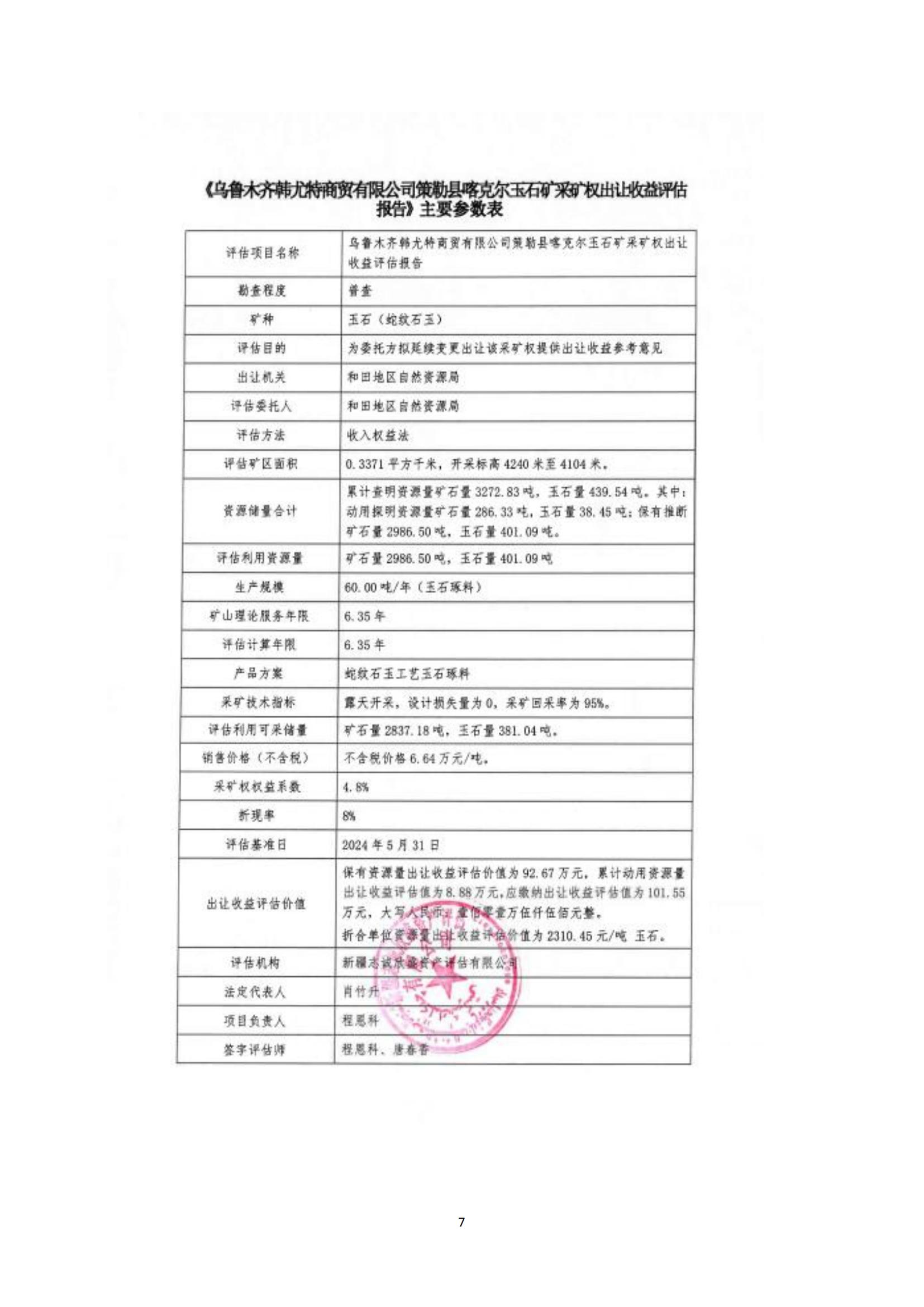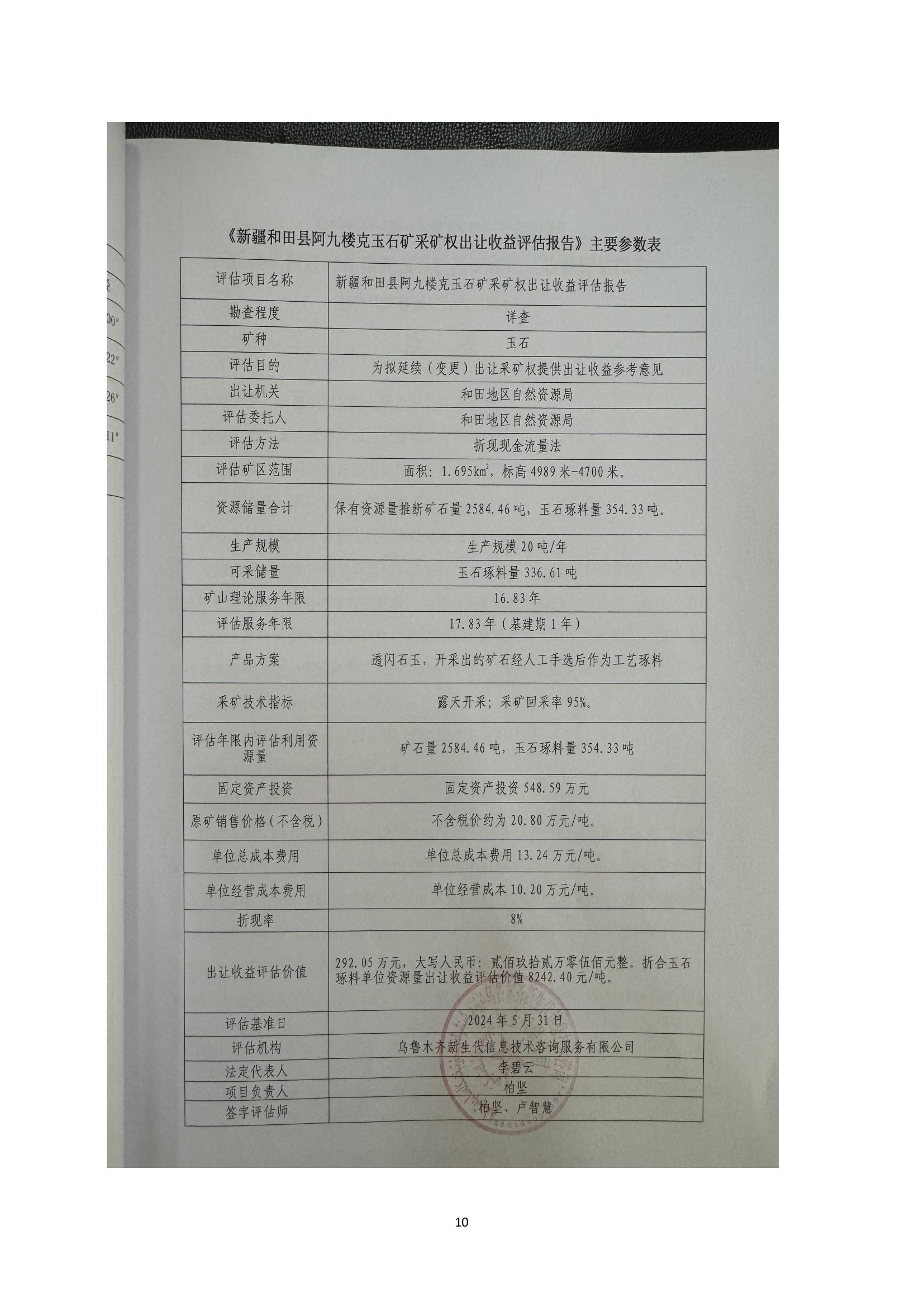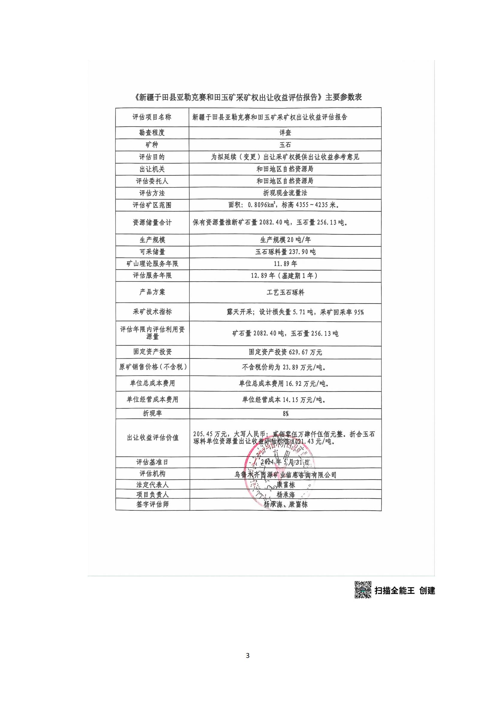關(guān)于新疆于田縣亞勒克賽和田玉礦等8宗礦采礦權(quán)出讓收益評(píng)估報(bào)告通過(guò)論證的公示