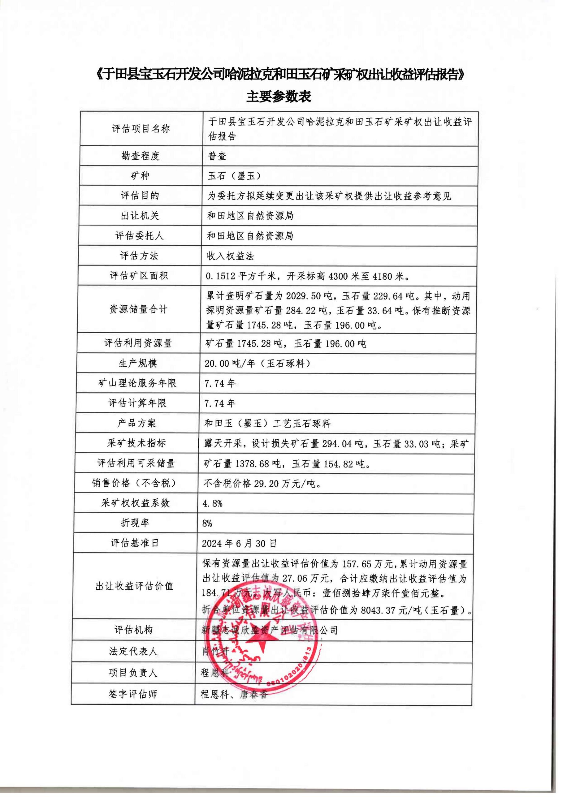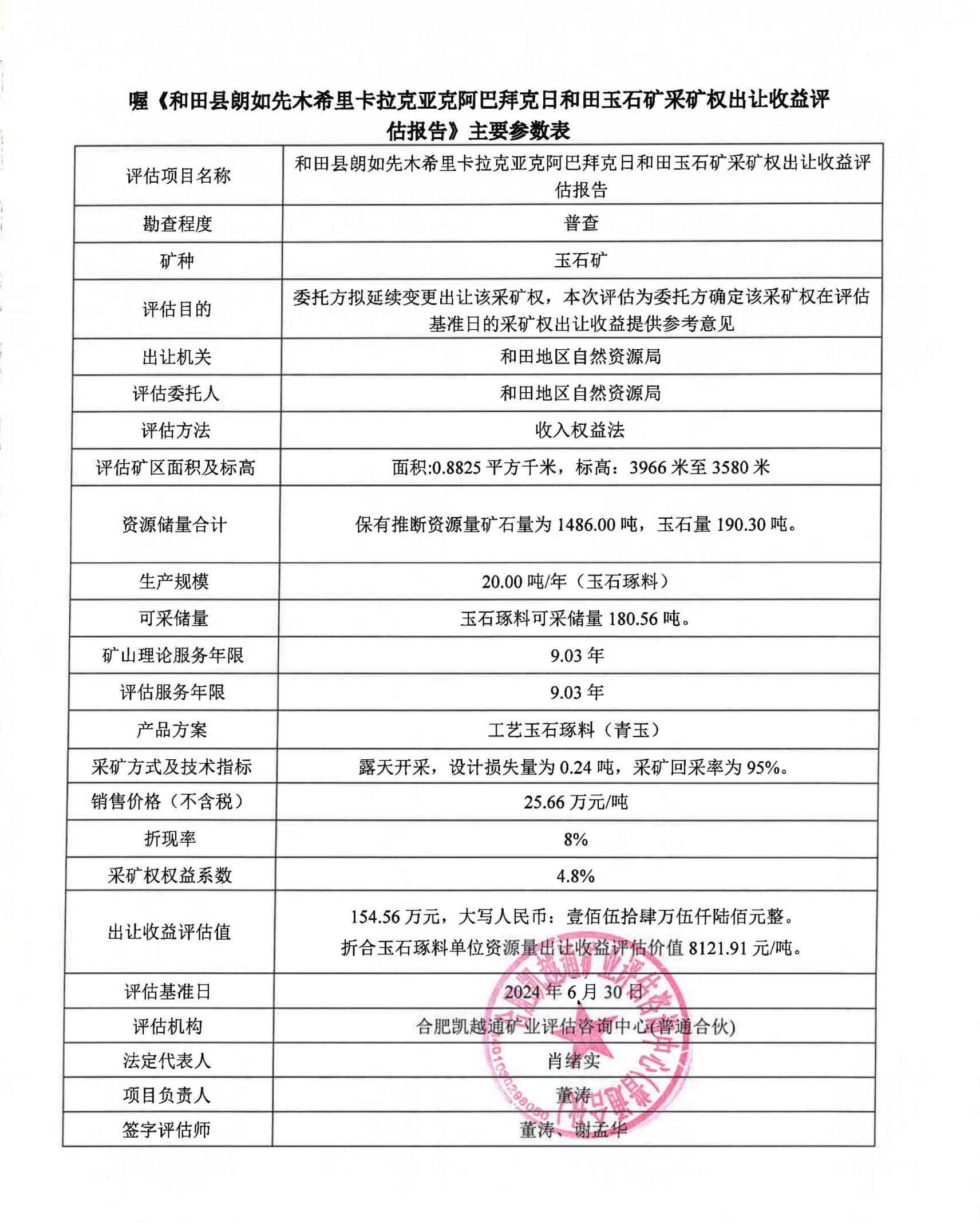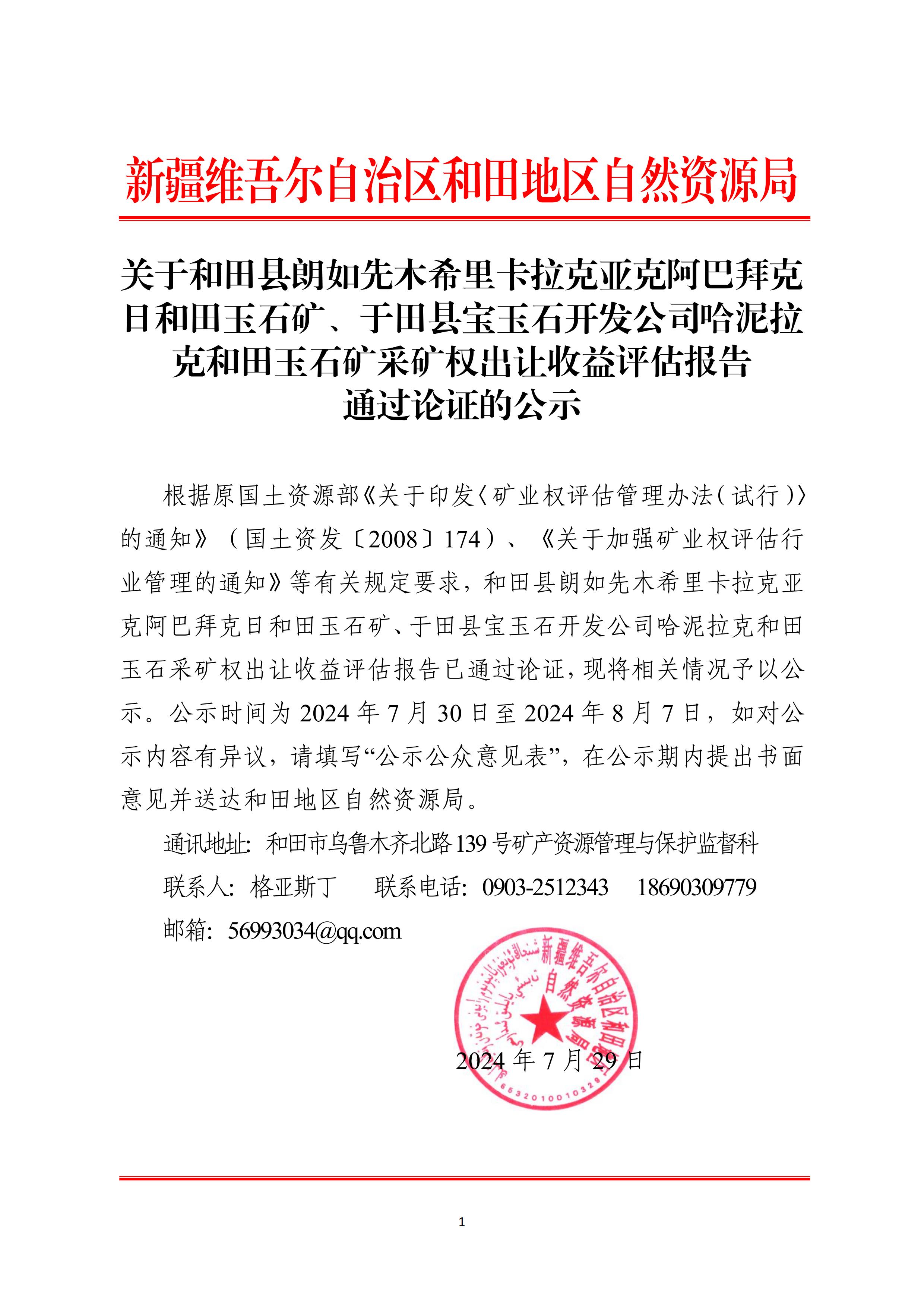 和田縣朗如先木希里卡拉克亞克阿巴拜克日和田玉石礦、于田縣寶玉石開發(fā)公司哈泥拉克和田玉石礦采礦權收益評估報告通過論證的公示