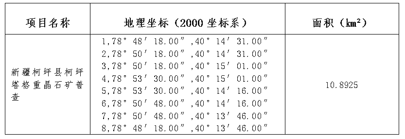 項(xiàng)目名稱:新疆柯坪縣柯坪塔格重晶石礦普查探礦權(quán)公開掛牌出讓