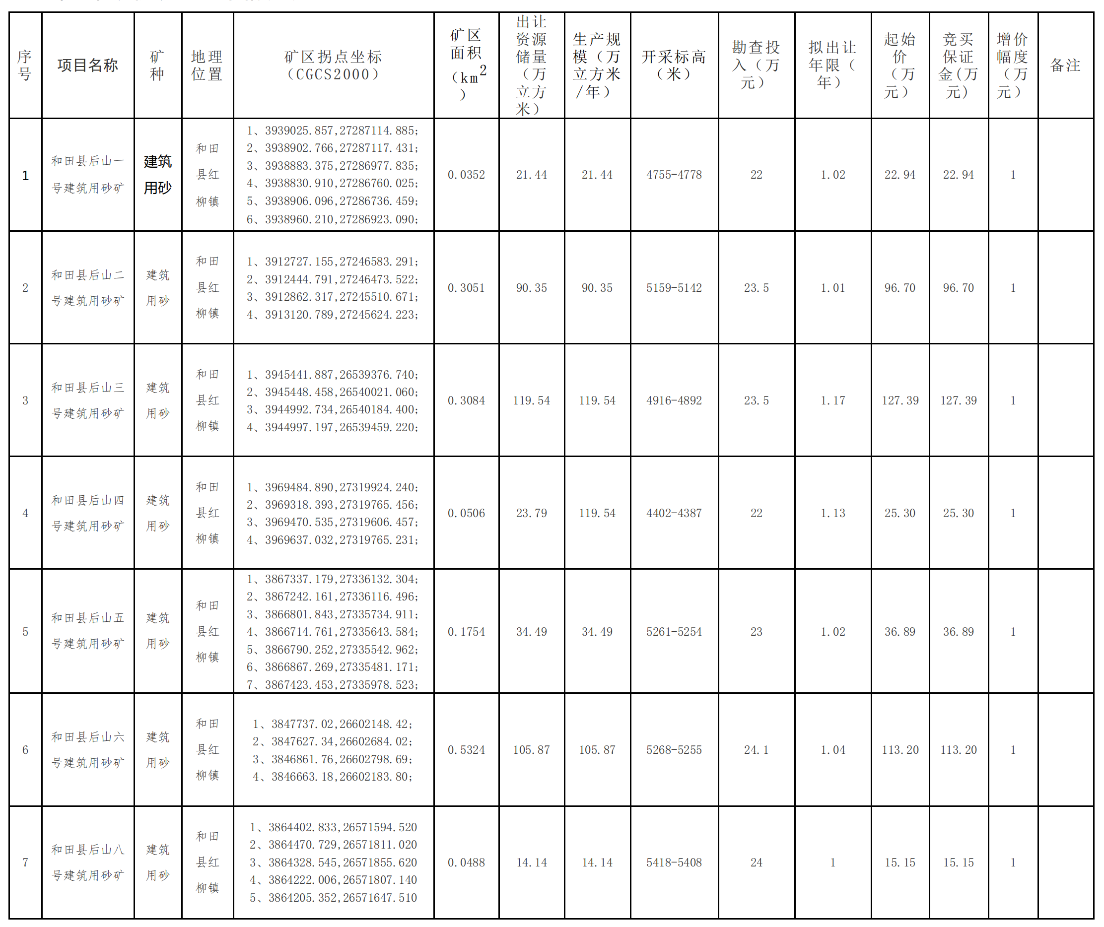 依據《中華人民共和國礦產資源法》《礦業(yè)權出讓交易規(guī)則》《新疆維吾爾自治區(qū)礦產資源管理若干事項暫行辦法》(新自然資規(guī)〔2021〕1號),以及《國務院辦公廳關于印發(fā)整合建立統(tǒng)一的公共資源交易平臺工作方案的通知》(國辦發(fā)〔2015〕63號))等有關法律法規(guī)的規(guī)定,經和田縣人民政府批準,受和田縣自然資源局的委托,和田地區(qū)行政服務和公共資源交易中心組織以下采礦權以掛牌方式公開出讓活動,現(xiàn)將有關事宜公告如下: