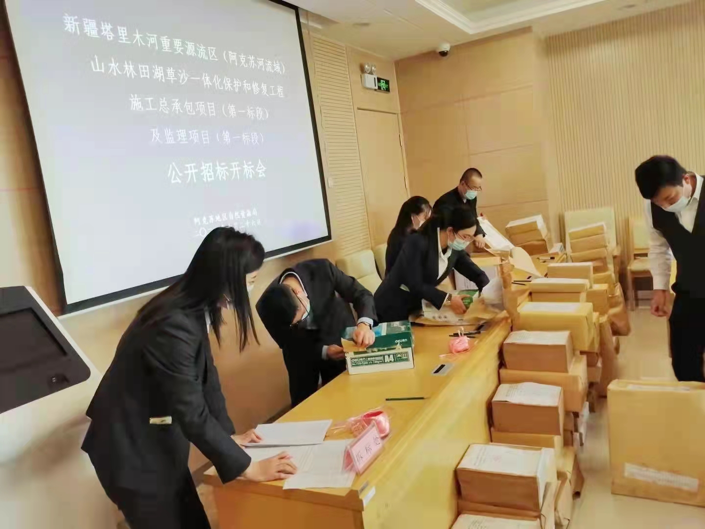 日,新疆國源土地礦產(chǎn)資源交易中心受阿克蘇自然資源局委托在自治區(qū)政務(wù)服務(wù)和公共資源交易中心開標(biāo)室一室舉行了新疆塔里木河重要源流區(qū)(阿克蘇河流域)山水林田湖草沙一體化保護(hù)和修復(fù)工程公開招標(biāo)會,共計(jì)