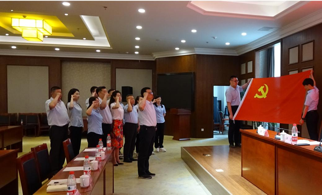 主題黨日活動在兩名黨員代表交流發(fā)言后由胡海亮?xí)涱I(lǐng)誓,全體黨員重溫入黨誓詞,重溫入黨時的莊嚴承諾,表達對黨忠誠。