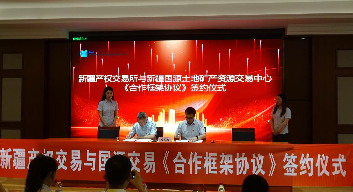 隨后由新疆產(chǎn)權(quán)交易所黨委書記胡海亮與國源集團總裁楊 杰簽訂《合作框架協(xié)議》。雙方就發(fā)揮各自優(yōu)勢、深化合作、攜手共贏達成一致。