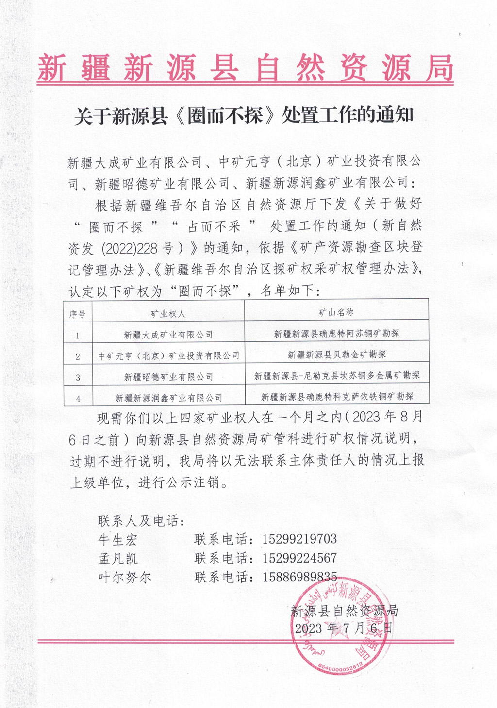 關(guān)于新源縣《圈而不探》處置工作的通知