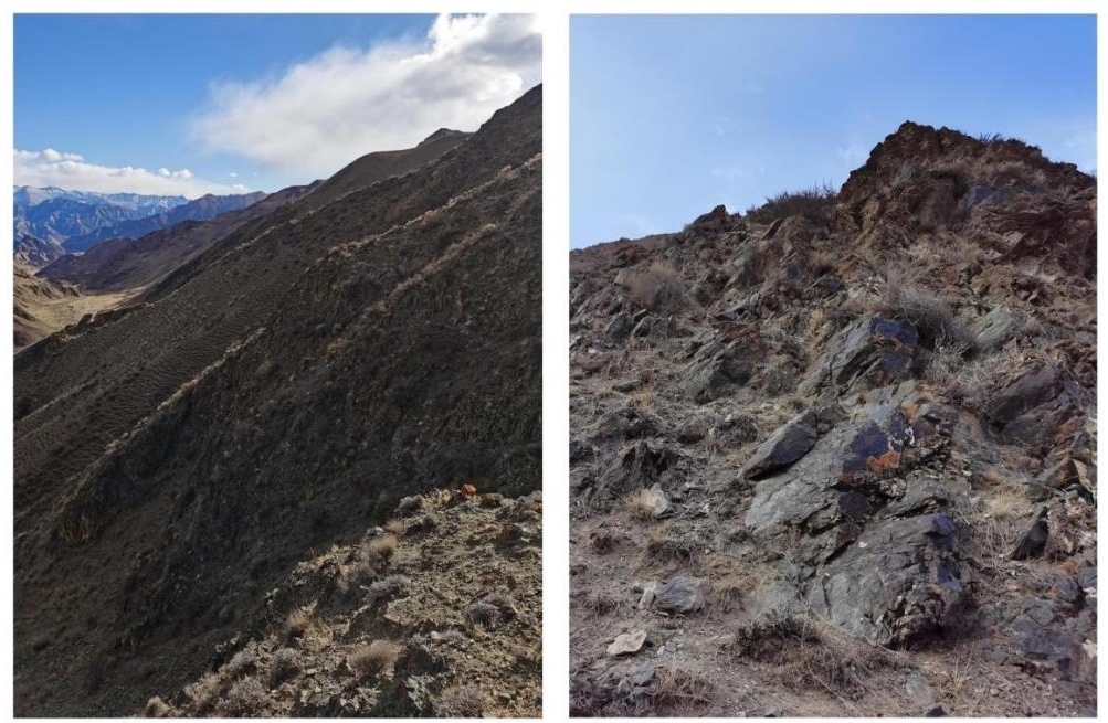 新疆和靜縣建筑用玄武巖礦位于和靜縣城西北方向350°方位,直線距離約60km處,位于和靜縣包格旦郭楞村北西方向9km處,行政區(qū)劃屬和靜縣管轄。礦區(qū)中心地理坐標(biāo)∶E 86°15′40″,N 42°56′00″。