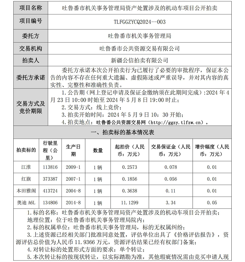 (1)公告發(fā)出后即進(jìn)入公告報(bào)名期。報(bào)名期結(jié)束后,進(jìn)入限時(shí)競(jìng)價(jià)期。本項(xiàng)目限時(shí)競(jìng)價(jià)周期為60秒。限時(shí)競(jìng)價(jià)期內(nèi)如無(wú)人加價(jià),則限時(shí)報(bào)價(jià)期最高出價(jià)者即為成交人,該標(biāo)的競(jìng)價(jià)活動(dòng)結(jié)束;限時(shí)競(jìng)價(jià)周期內(nèi)如出現(xiàn)有效應(yīng)(報(bào))價(jià),則進(jìn)入新的限時(shí)競(jìng)價(jià)周期;在一個(gè)限時(shí)競(jìng)價(jià)周期內(nèi)如未出現(xiàn)有效應(yīng)(報(bào))價(jià),則應(yīng)(報(bào))價(jià)結(jié)束,當(dāng)前最高有效應(yīng)(報(bào))價(jià)者即成為成交人,該標(biāo)的競(jìng)價(jià)活動(dòng)結(jié)束。