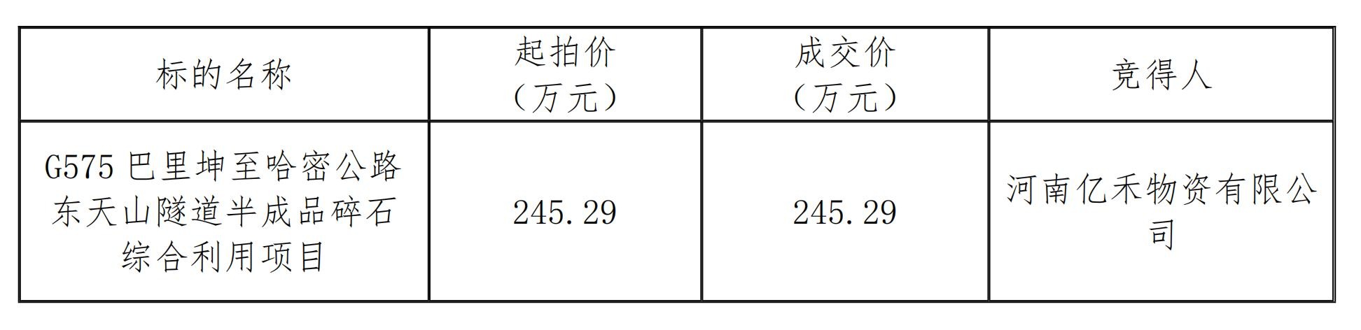 按照自然資源部《關(guān)于規(guī)范和完善砂石開采管理的通知》(自然資發(fā)〔2023〕57號)文件及相關(guān)會議要求,遵循公開、公平、公正的原則,新疆國源土地礦產(chǎn)資源交易中心組織對該項目進行公開拍賣,2024年7月8日至7月15日公告期滿后,于2024年7月15日舉行G575巴里坤至哈密公路東天山隧道半成品碎石綜合利用項目拍賣會,現(xiàn)將拍賣結(jié)果公示如下: