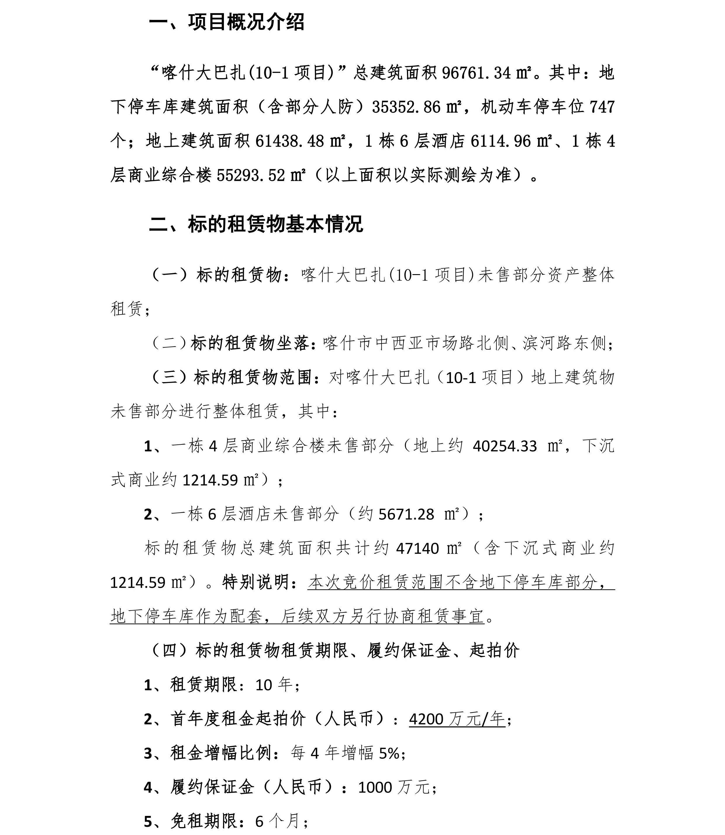 喀什大巴扎(10-1項目)未售部分資產(chǎn)整體租賃拍賣公告