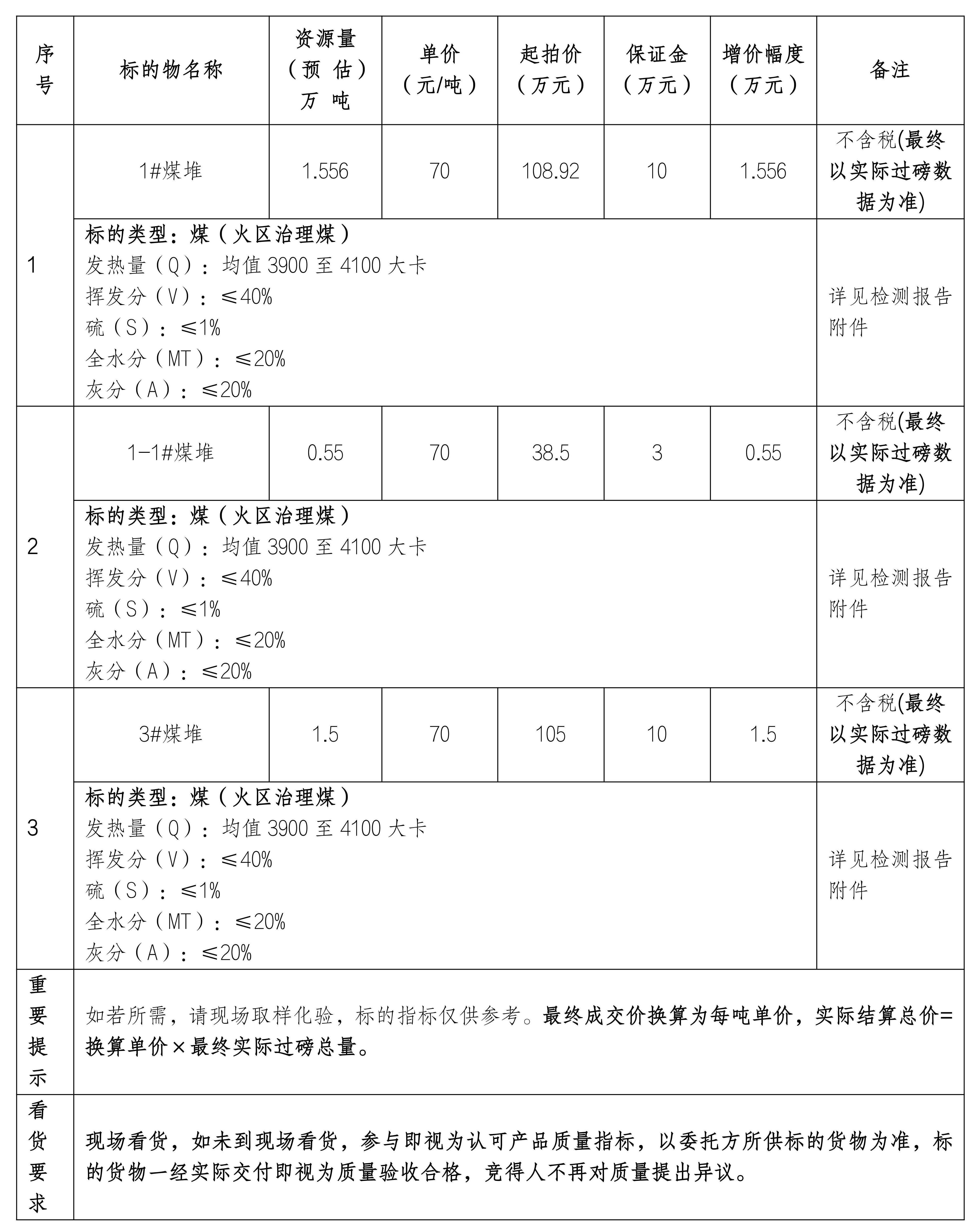 (五)拍賣標(biāo)的展示地點:新疆昌吉回族自治州準(zhǔn)東經(jīng)濟技術(shù)開發(fā)區(qū)老君廟礦區(qū)。(提示:需進行現(xiàn)場踏勘的,由競買人自行前往,時間自定、費用自理,委托人、交易平臺和拍賣人不統(tǒng)一組織,踏勘聯(lián)系電話詳見本公告咨詢聯(lián)系人。)