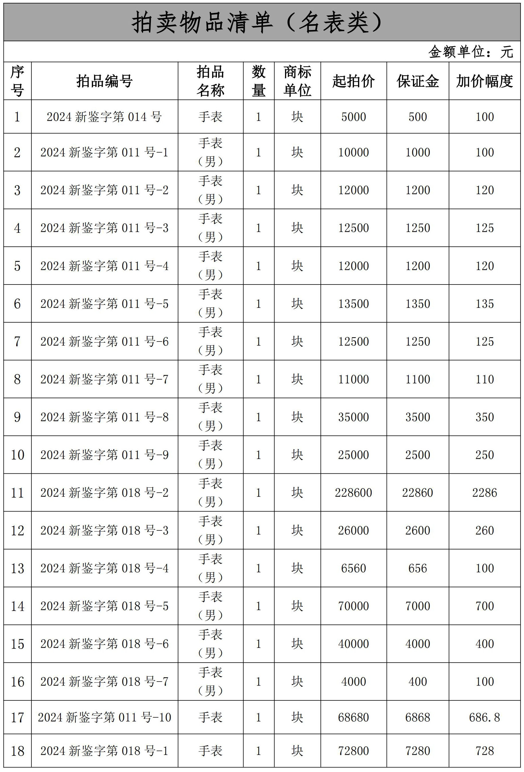 一、拍賣標(biāo)的:一批名表。(詳見拍賣目錄,26件)