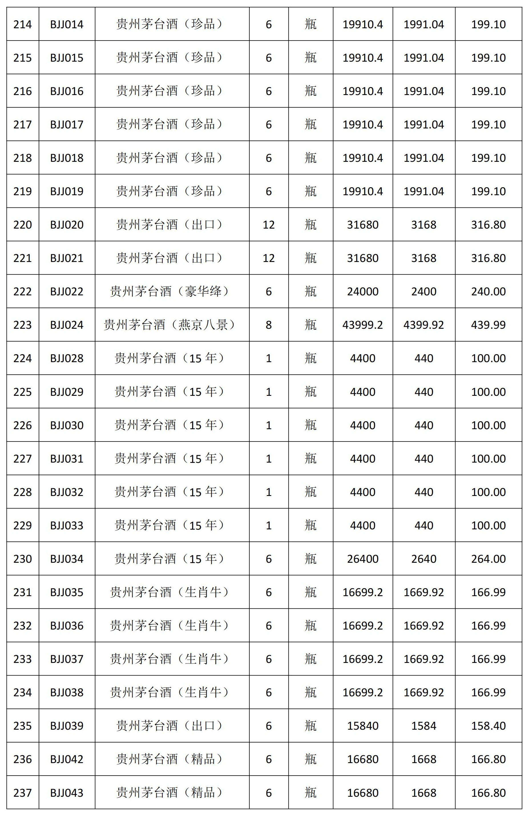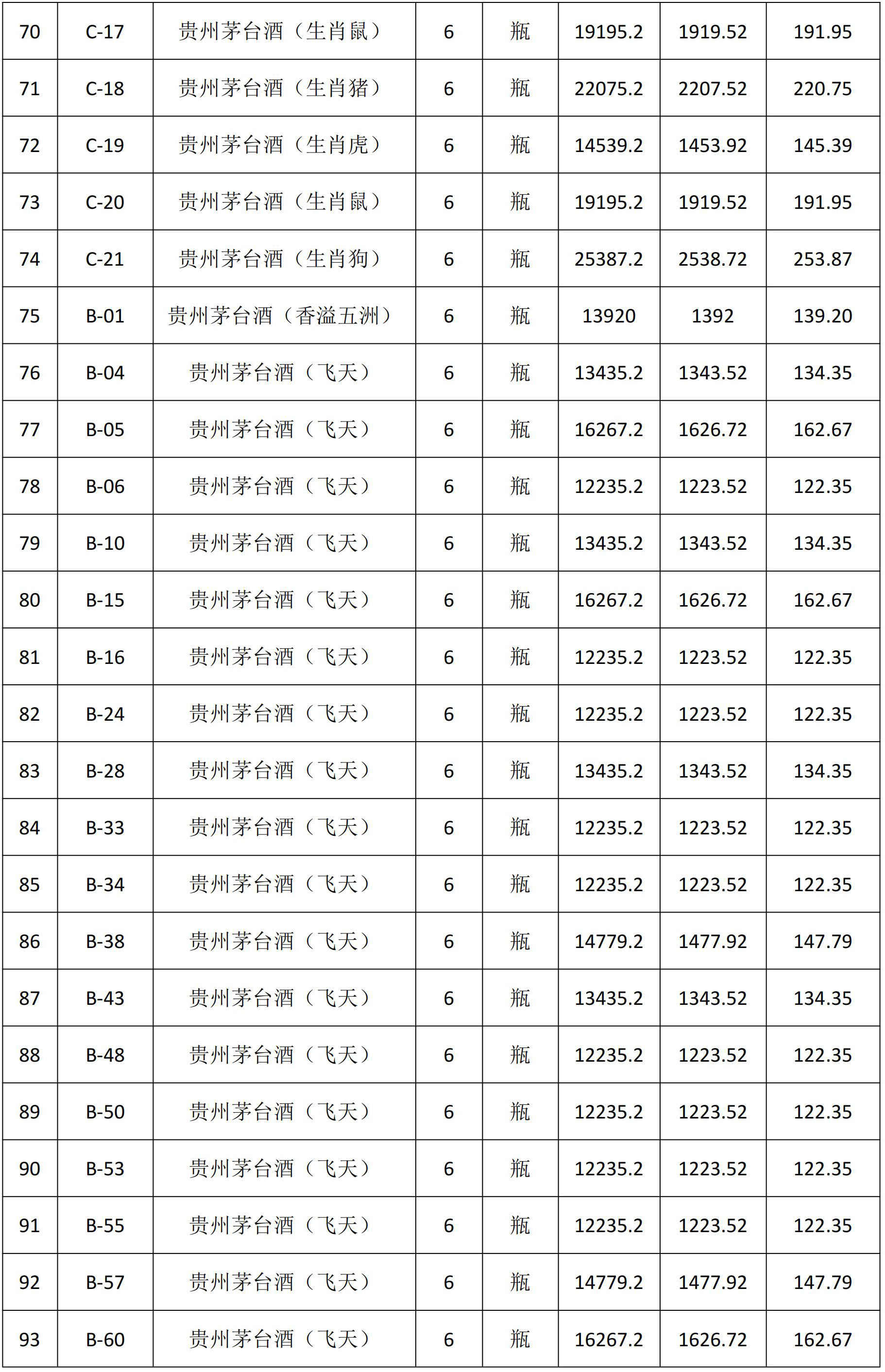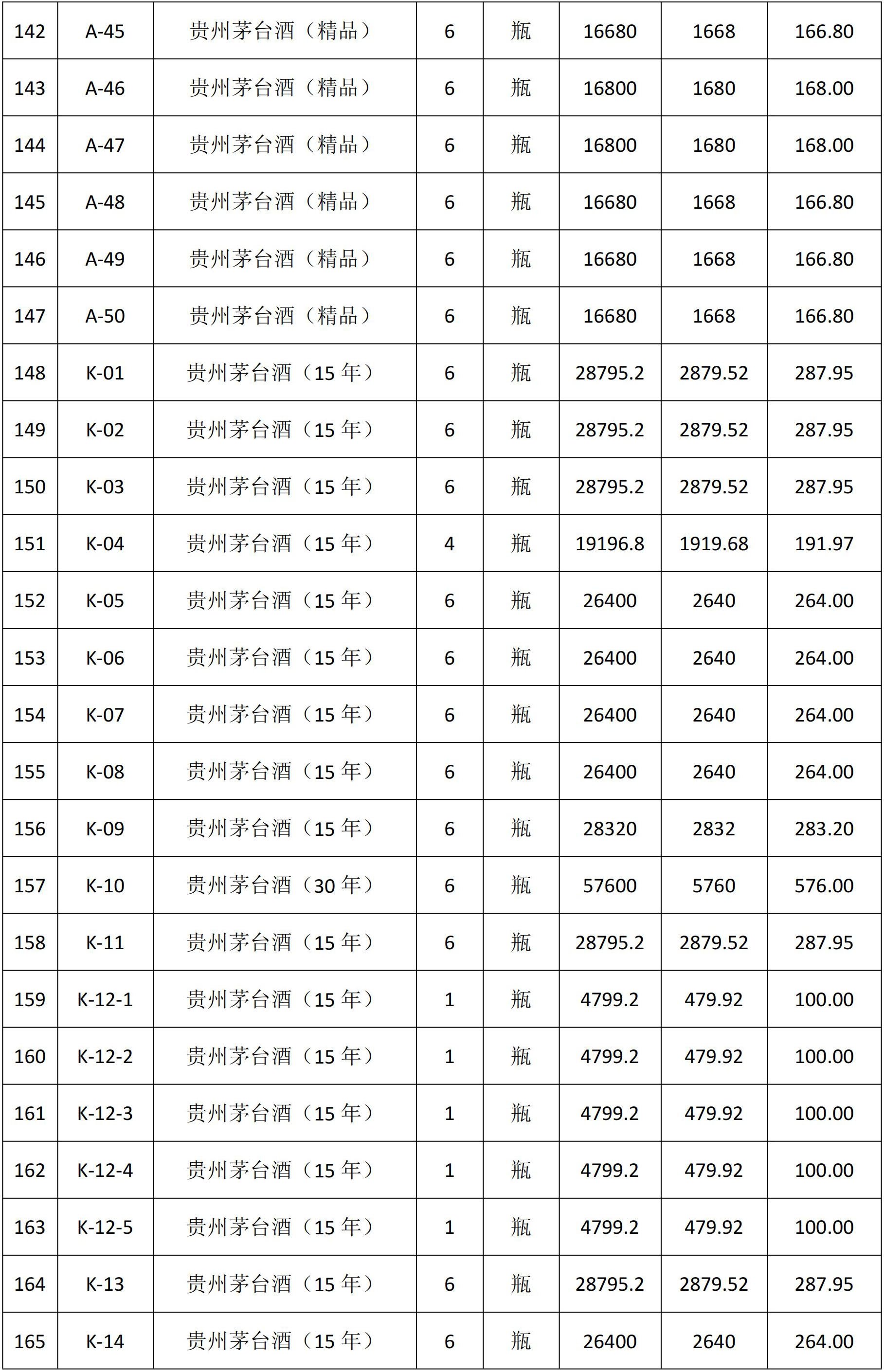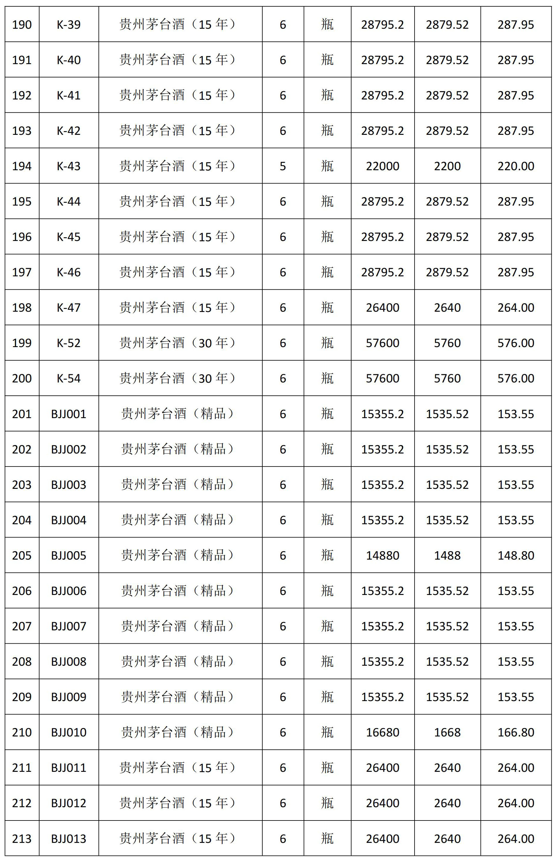 一、拍賣標(biāo)的:一批茅臺(tái)系列白酒。(詳見(jiàn)拍賣物品清單,248件)