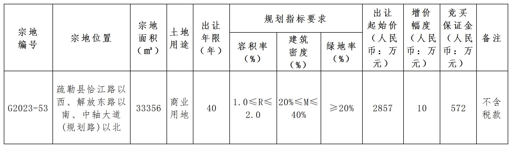 根據(jù)《中華人民共和國(guó)土地管理法》《招標(biāo)拍賣掛牌出讓國(guó)有建設(shè)用地使用權(quán)規(guī)定》(國(guó)土資源部令第39號(hào))《自治區(qū)深化公共資源交易平臺(tái)整合共享工作方案〉的通知》(新政辦函〔2019〕250號(hào))等有關(guān)法律法規(guī)及文件的規(guī)定,經(jīng)疏勒縣人民政府批準(zhǔn),疏勒縣自然資源局決定以掛牌方式出讓1(幅)地塊的國(guó)有建設(shè)用地使用權(quán)。并委托新疆國(guó)源土地礦產(chǎn)資源交易中心組織實(shí)施?,F(xiàn)將有關(guān)事項(xiàng)公告如下: