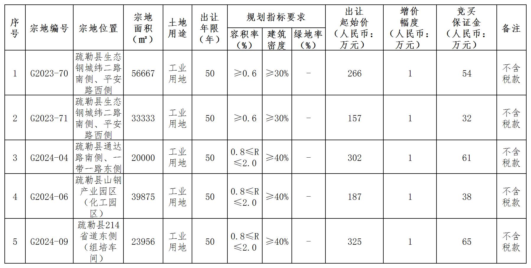 根據(jù)《中華人民共和國土地管理法》《招標拍賣掛牌出讓國有建設(shè)用地使用權(quán)規(guī)定》(國土資源部令第39號)《自治區(qū)深化公共資源交易平臺整合共享工作方案〉的通知》(新政辦函〔2019〕250號)等有關(guān)法律法規(guī)及文件規(guī)定,經(jīng)疏勒縣人民政府批準,疏勒縣自然資源局決定以掛牌方式出讓5(幅)地塊的國有建設(shè)用地使用權(quán)。并委托新疆公信拍賣有限公司,新疆國正拍賣有限公司,新疆國源土地礦產(chǎn)資源交易中心,新疆九鼎軒拍賣有限公司組織實施?,F(xiàn)將有關(guān)事項公告如下: