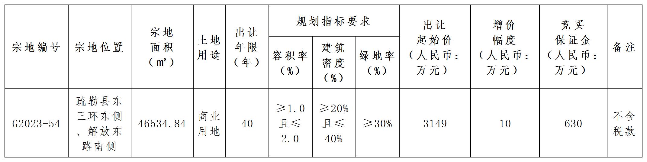 根據(jù)《中華人民共和國(guó)土地管理法》《招標(biāo)拍賣掛牌出讓國(guó)有建設(shè)用地使用權(quán)規(guī)定》(國(guó)土資源部令第39號(hào))《自治區(qū)深化公共資源交易平臺(tái)整合共享工作方案〉的通知》(新政辦函〔2019〕250號(hào))等有關(guān)法律法規(guī)及文件的規(guī)定,經(jīng)疏勒縣人民政府批準(zhǔn),疏勒縣自然資源局決定以掛牌方式出讓1(幅)地塊的國(guó)有建設(shè)用地使用權(quán)。并委托新疆國(guó)源土地礦產(chǎn)資源交易中心組織實(shí)施?,F(xiàn)將有關(guān)事項(xiàng)公告如下: