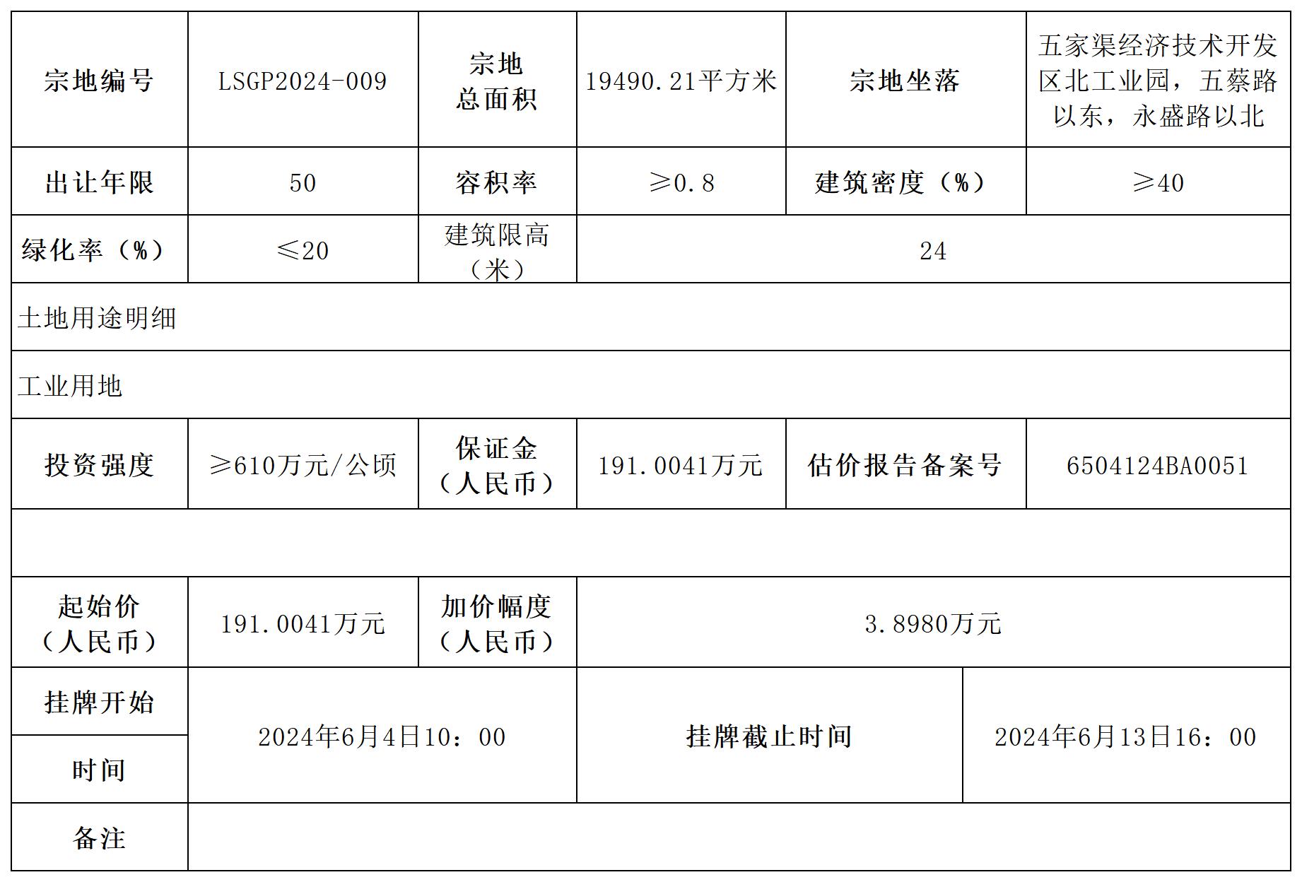六、本次國(guó)有建設(shè)用地使用掛牌地點(diǎn)為兵團(tuán)公共資源交易中心第六分中心。掛牌時(shí)間為:2024年6月4日10:00至2024年6月13日16:00。