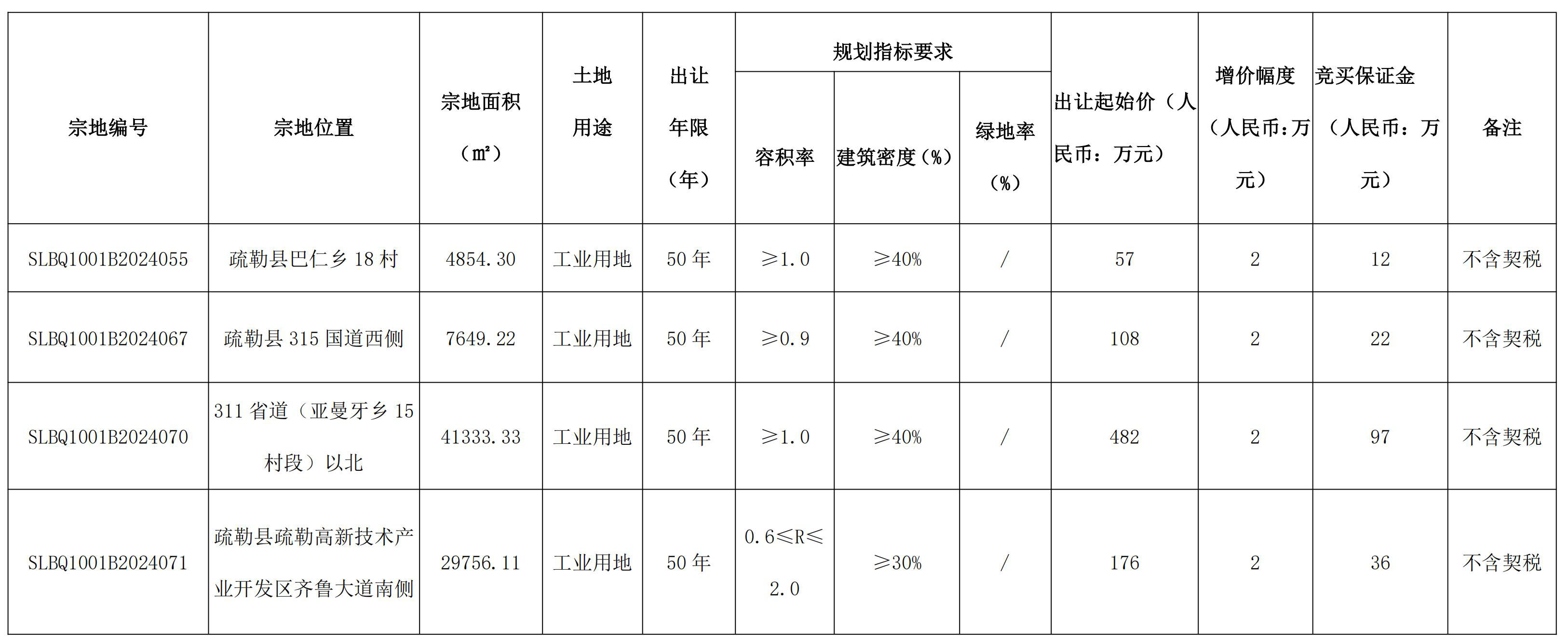 7.按照《自然資源部關(guān)于完善工業(yè)用地供應(yīng)政策支持實體經(jīng)濟發(fā)展的通知》(自然資發(fā)〔2022〕201號)第二條、優(yōu)化土地供應(yīng)程序。在確保土地市場公平公正公開的前提下,推進(jìn)工業(yè)用地帶條件招標(biāo)拍賣掛牌出讓(租賃),各地可將產(chǎn)業(yè)類型、生產(chǎn)技術(shù)、節(jié)能環(huán)保等產(chǎn)業(yè)準(zhǔn)入要求納入供地條件要求,根據(jù)疏勒縣園區(qū)總體規(guī)劃,SLBQ1001B2024071號宗地擬實施項目為二氧化碳滅火系統(tǒng)項目,SLBQ1001B2024067號宗地擬實施項目為電商產(chǎn)業(yè)園項目。