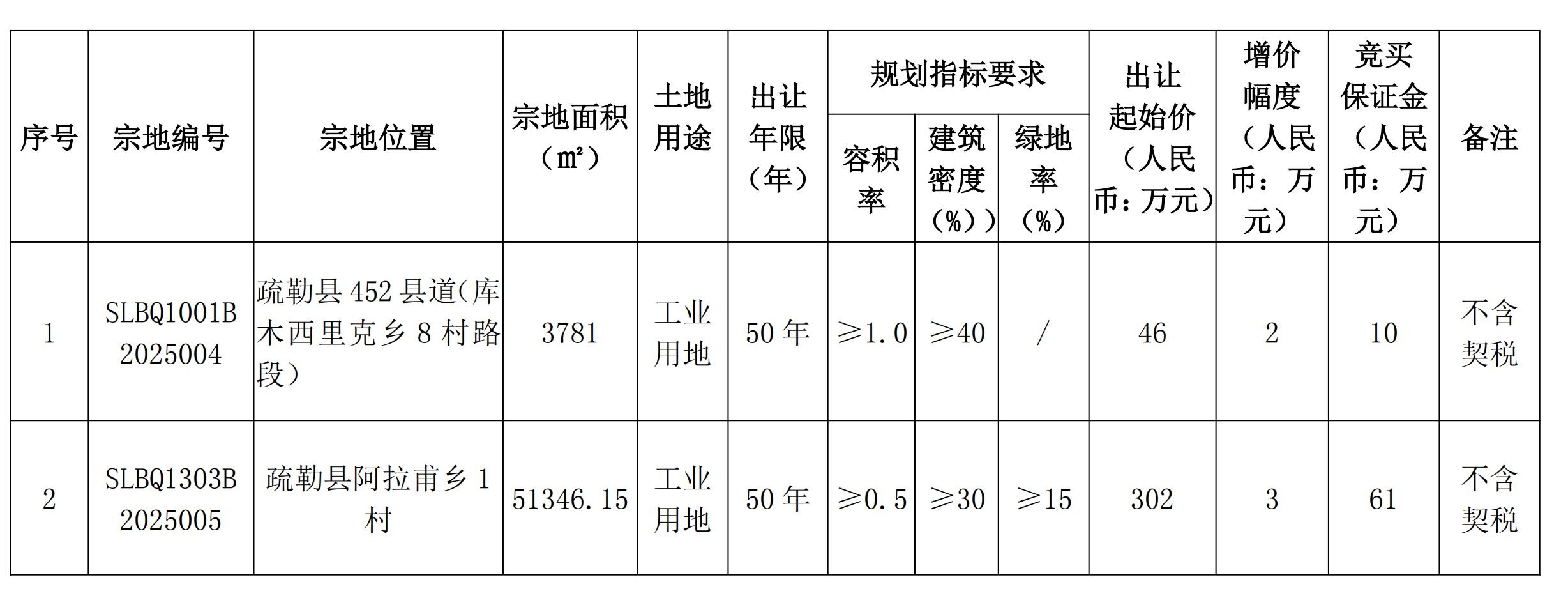 備注:根據(jù)《疏勒縣國土空間總體規(guī)劃》,SLBQ1303B2025005號宗地實施新能源儲能建設(shè)項目,競買人擬實施的項目要符合總體規(guī)劃。