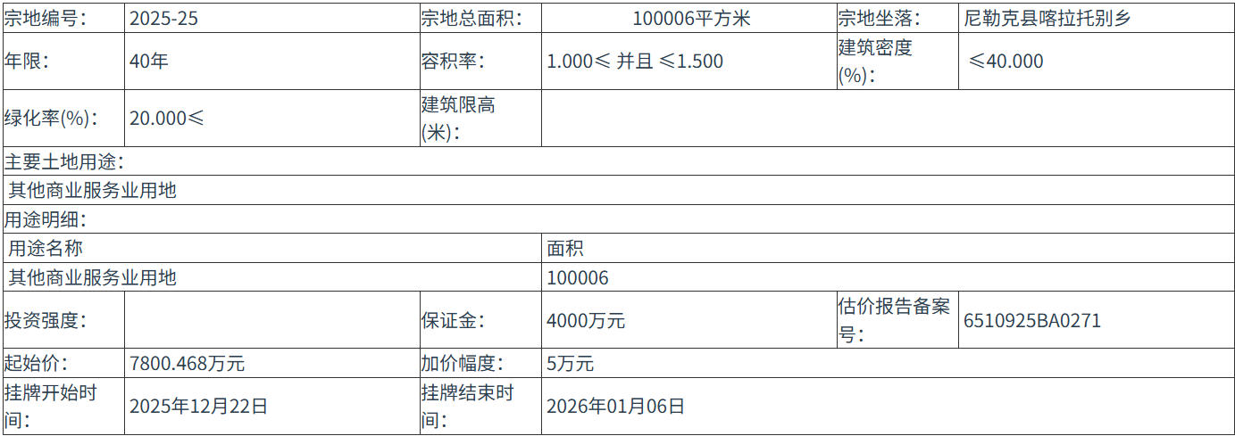 2025-25 號(hào)地塊:2025年12月22日 10時(shí)00分 至 2026年01月06日 18時(shí)00分;
