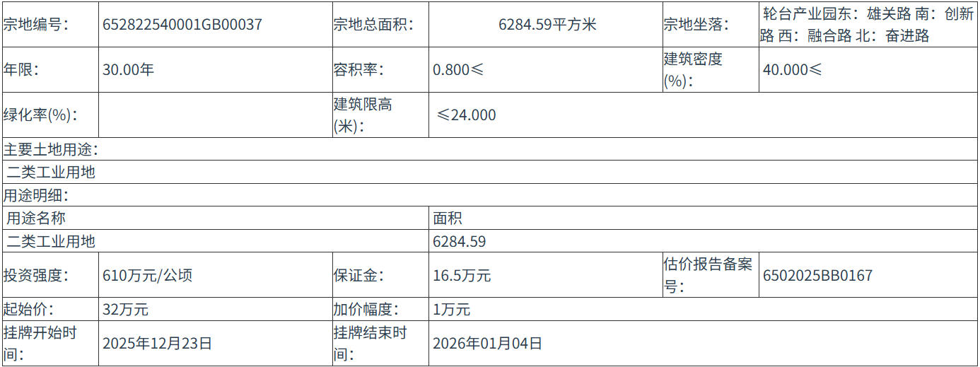 652822540001GB00037 號(hào)地塊:2025年12月23日 10時(shí)00分 至 2026年01月04日 12時(shí)00分;