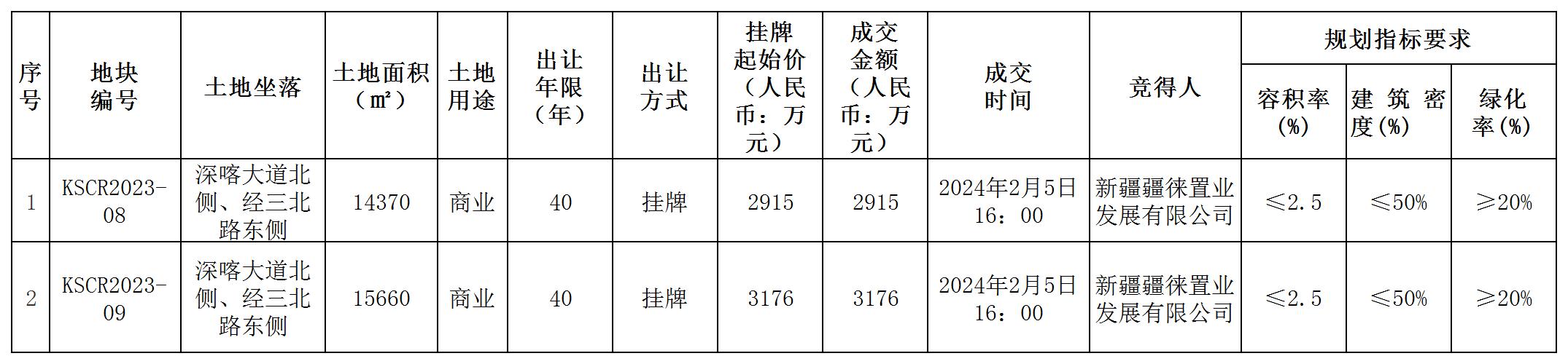 喀什市國(guó)有建設(shè)用地使用權(quán)成交結(jié)果公示