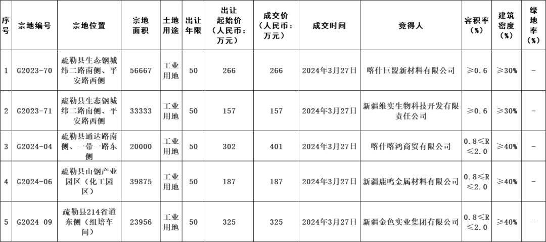 疏勒縣自然資源局國有建設(shè)用地使用權(quán)成交結(jié)果公示