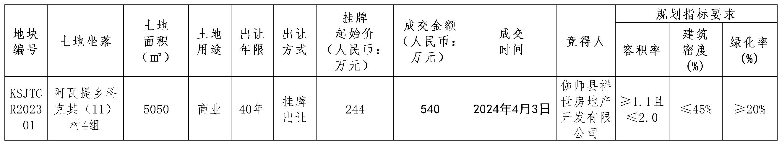 ( 喀市集入市成交公示[2024]01號)