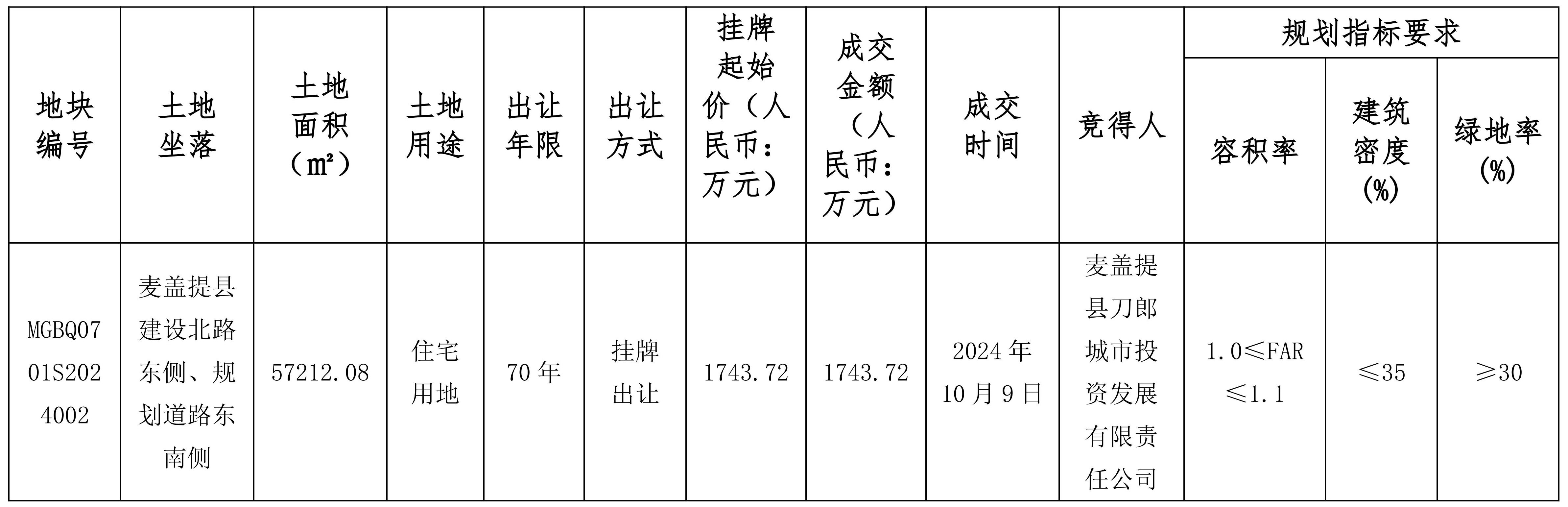 根據(jù)《中華人民共和國土地管理法》《招標(biāo)拍賣掛牌出讓國有建設(shè)用地使用權(quán)規(guī)定》(國土資源部令第39號(hào))《自治區(qū)深化公共資源交易平臺(tái)整合共享工作方案〉的通知》(新政辦函〔2019〕250號(hào))等有關(guān)法律法規(guī)及文件的規(guī)定,麥蓋提縣自然資源局以掛牌方式出讓1(幅)地塊的國有建設(shè)用地使用權(quán),現(xiàn)將出讓成交結(jié)果公示如下: