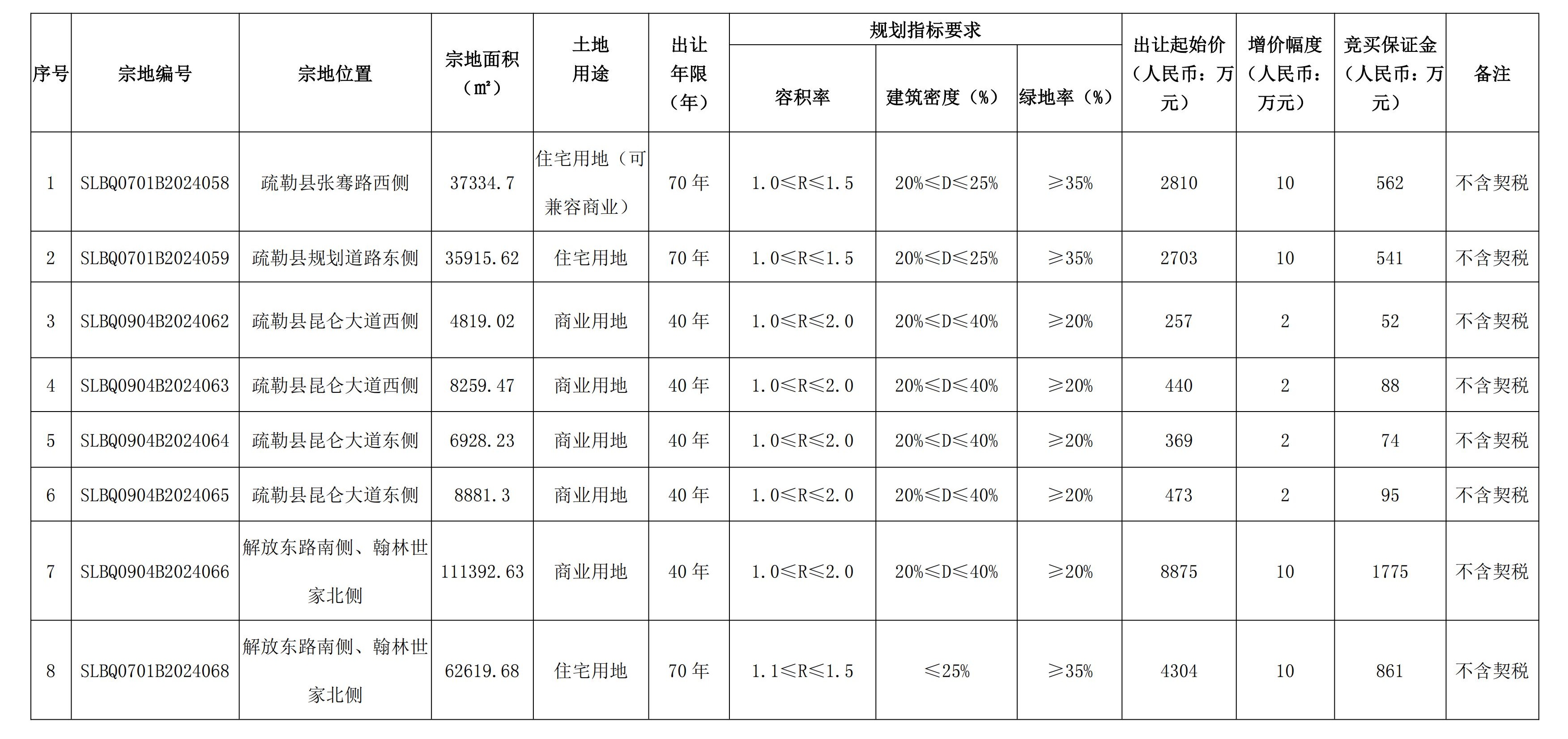 根據(jù)《中華人民共和國土地管理法》《招標(biāo)拍賣掛牌出讓國有建設(shè)用地使用權(quán)規(guī)定》(國土資源部令第39號)《自治區(qū)深化公共資源交易平臺整合共享工作方案〉的通知》(新政辦函〔2019〕250號)等有關(guān)法律法規(guī)及文件的規(guī)定,經(jīng)疏勒縣人民政府批準(zhǔn),疏勒縣自然資源局決定以掛牌方式出讓8(幅)地塊的國有建設(shè)用地使用權(quán)。并委托新疆公信拍賣有限公司、新疆國源土地礦產(chǎn)資源交易中心(有限公司)、新疆九鼎軒拍賣有限公司公開掛牌出讓,現(xiàn)將有關(guān)事項公告如下: