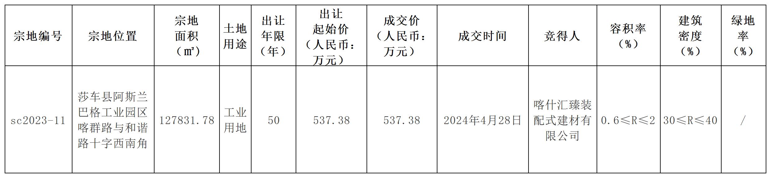 莎車縣自然資源局國有建設(shè)用地使用權(quán)掛牌出讓成交結(jié)果公示