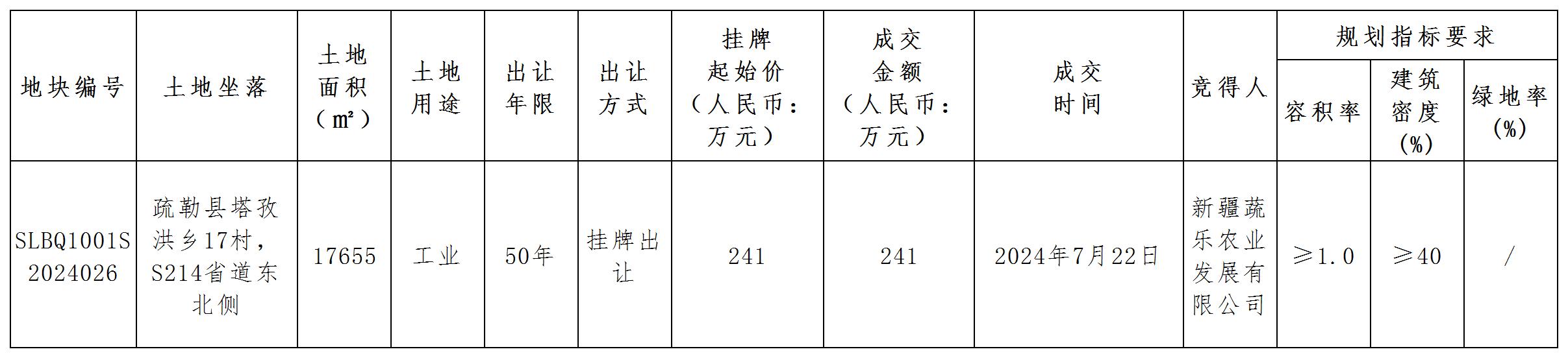疏勒縣自然資源局國(guó)有建設(shè)用地使用權(quán)掛牌出讓成交結(jié)果公示