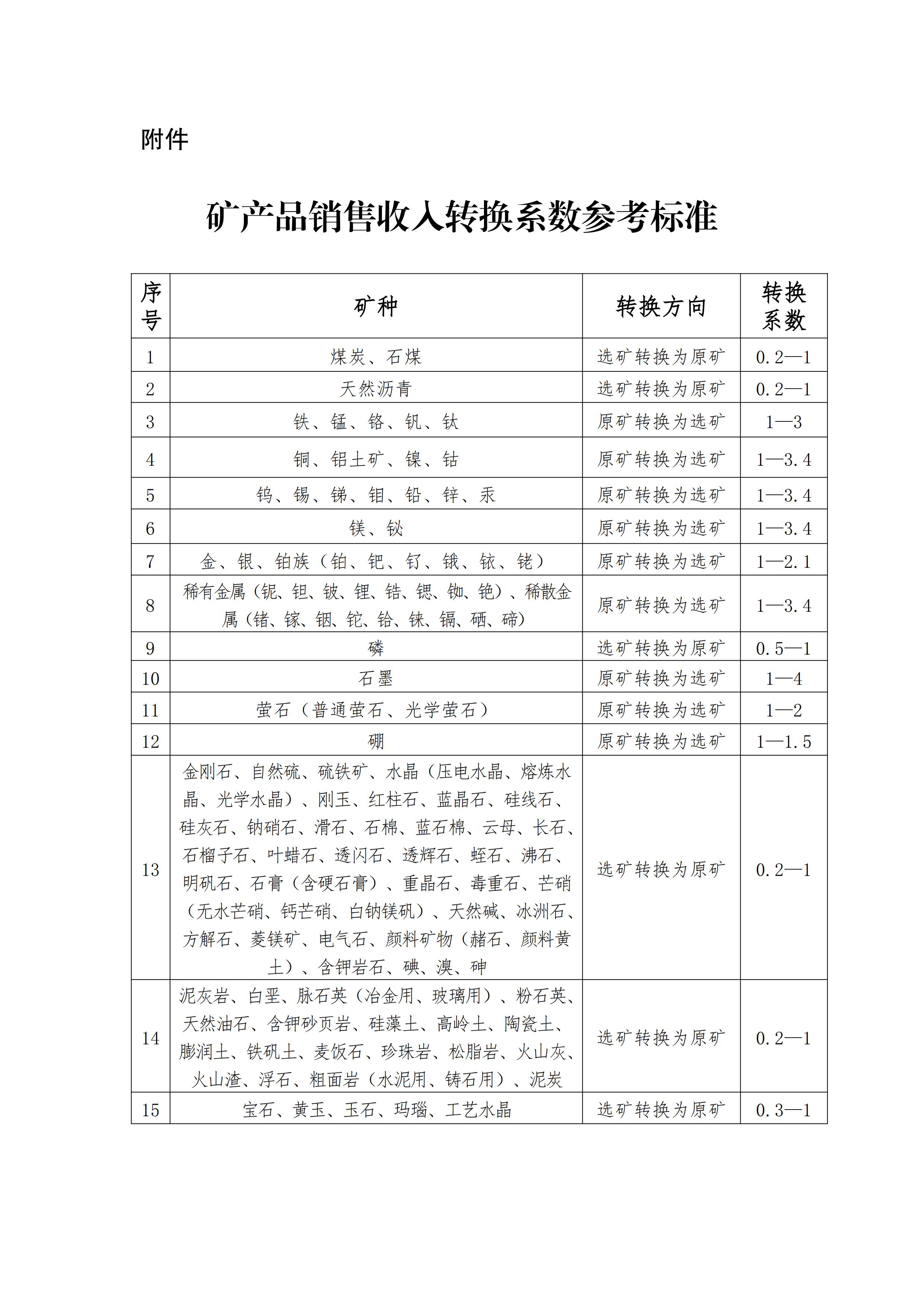 附件:礦產(chǎn)品銷售收入轉(zhuǎn)換系數(shù)參考標(biāo)準(zhǔn)
