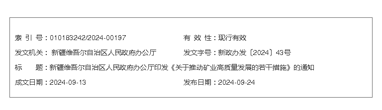 新疆維吾爾自治區(qū)人民政府辦公廳印發(fā)《關(guān)于推動(dòng)礦業(yè)高質(zhì)量發(fā)展的若干措施》的通知