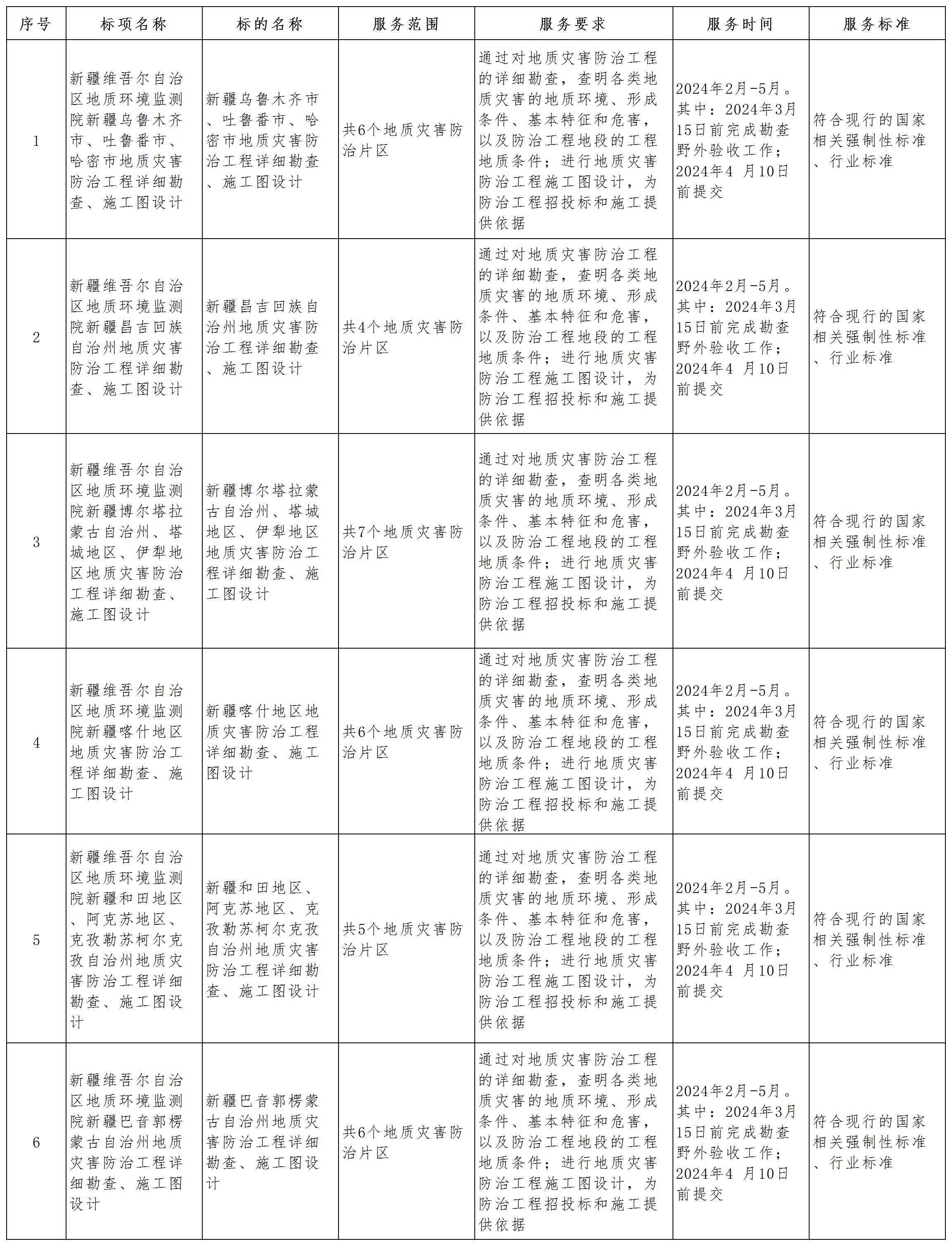 二、項目名稱: 新疆維吾爾自治區(qū)地質災害防治工程詳細勘查、施工圖設計項目