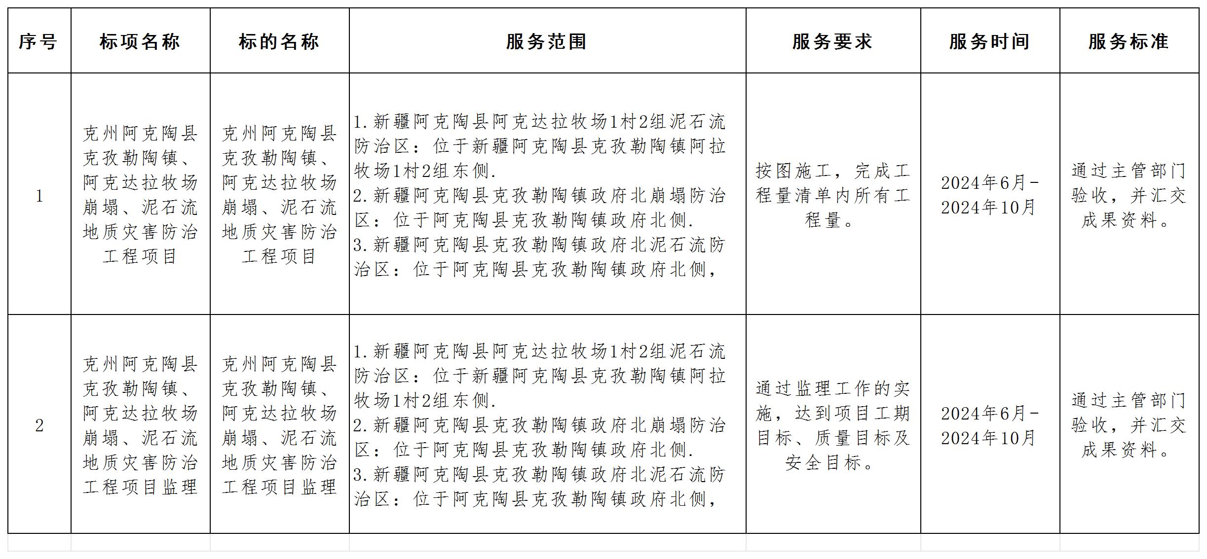 二、項目名稱: 克州阿克陶縣克孜勒陶鎮(zhèn)、阿克達拉牧場崩塌、泥石流地質(zhì)災(zāi)害防治工程項目