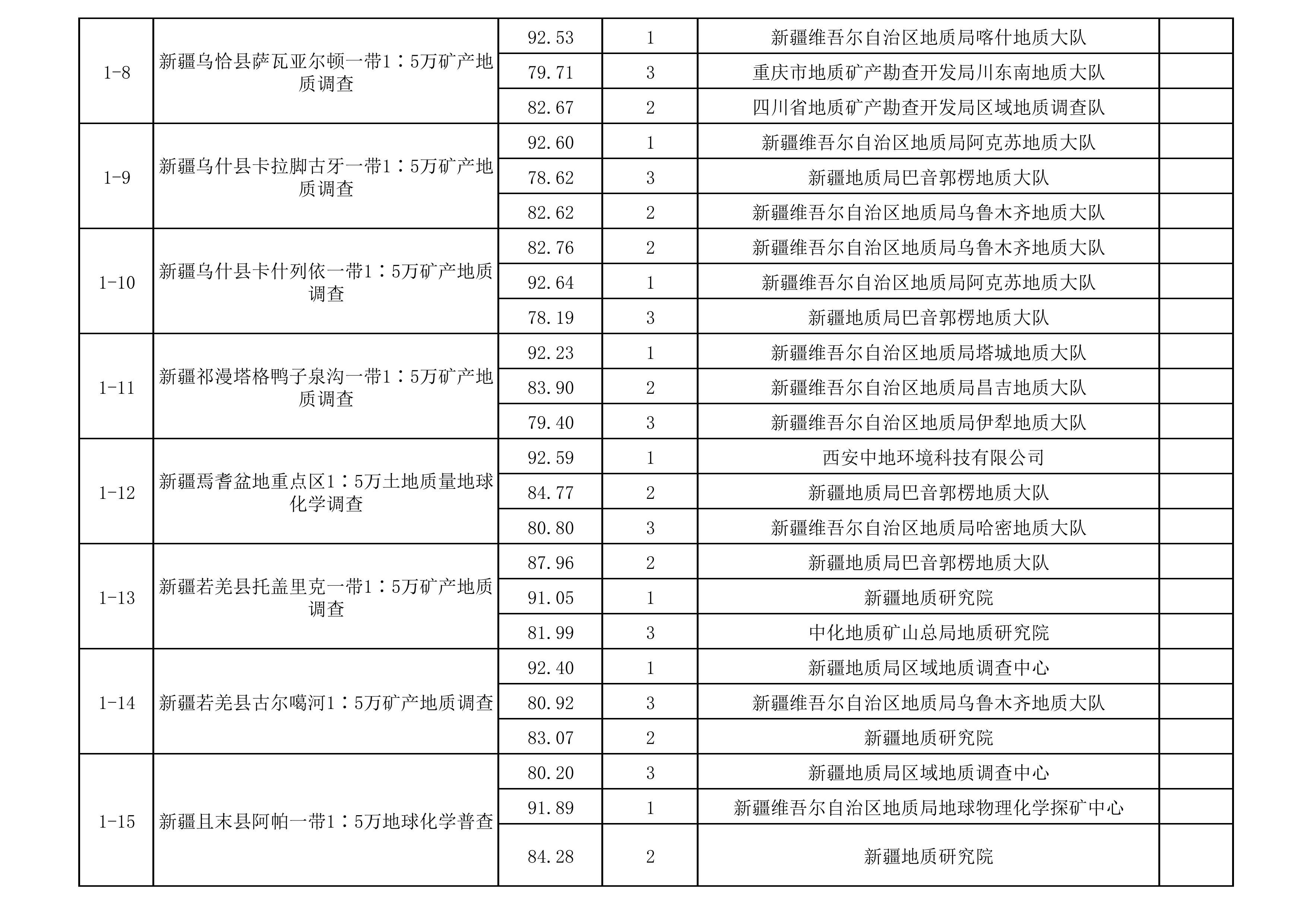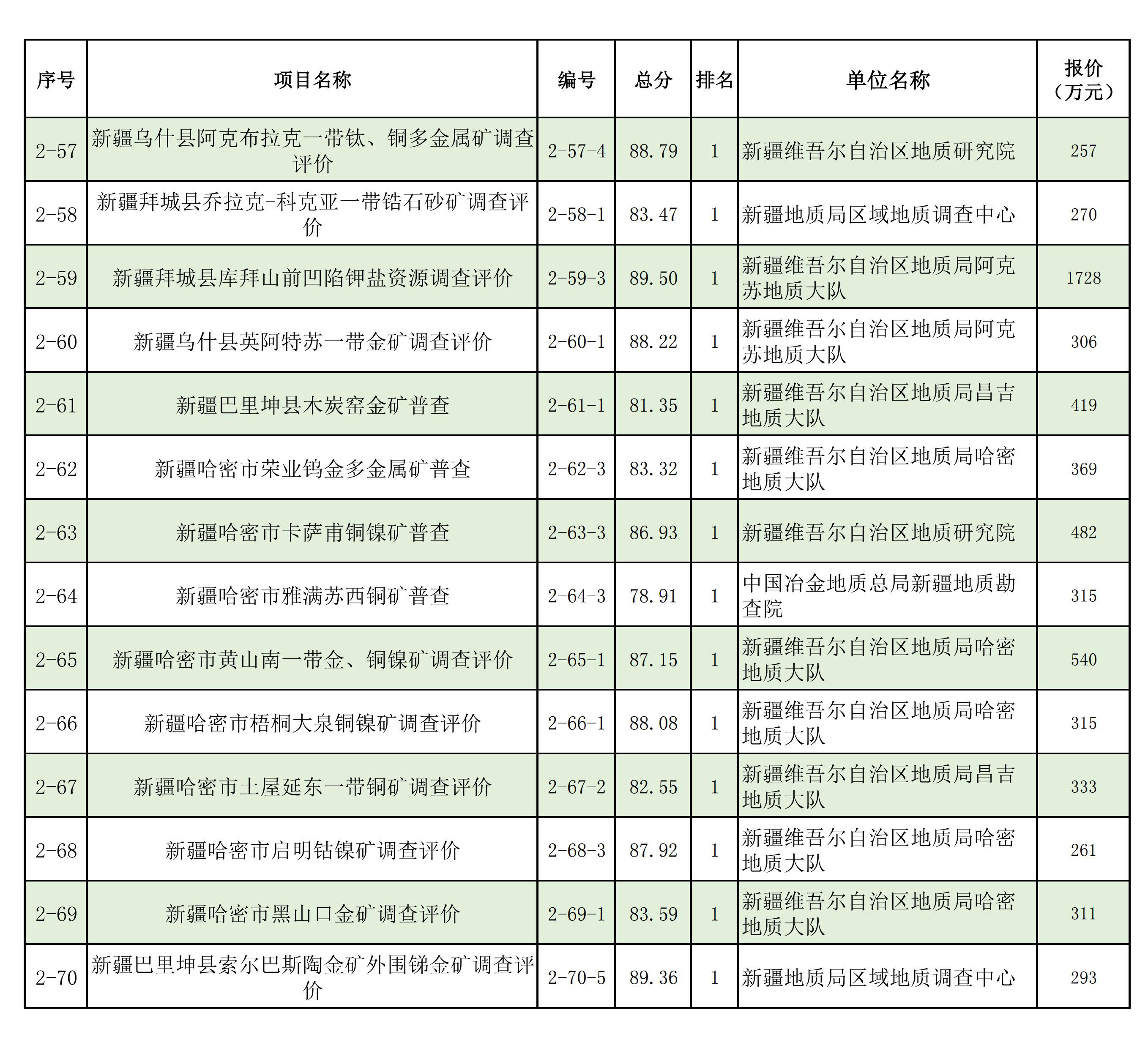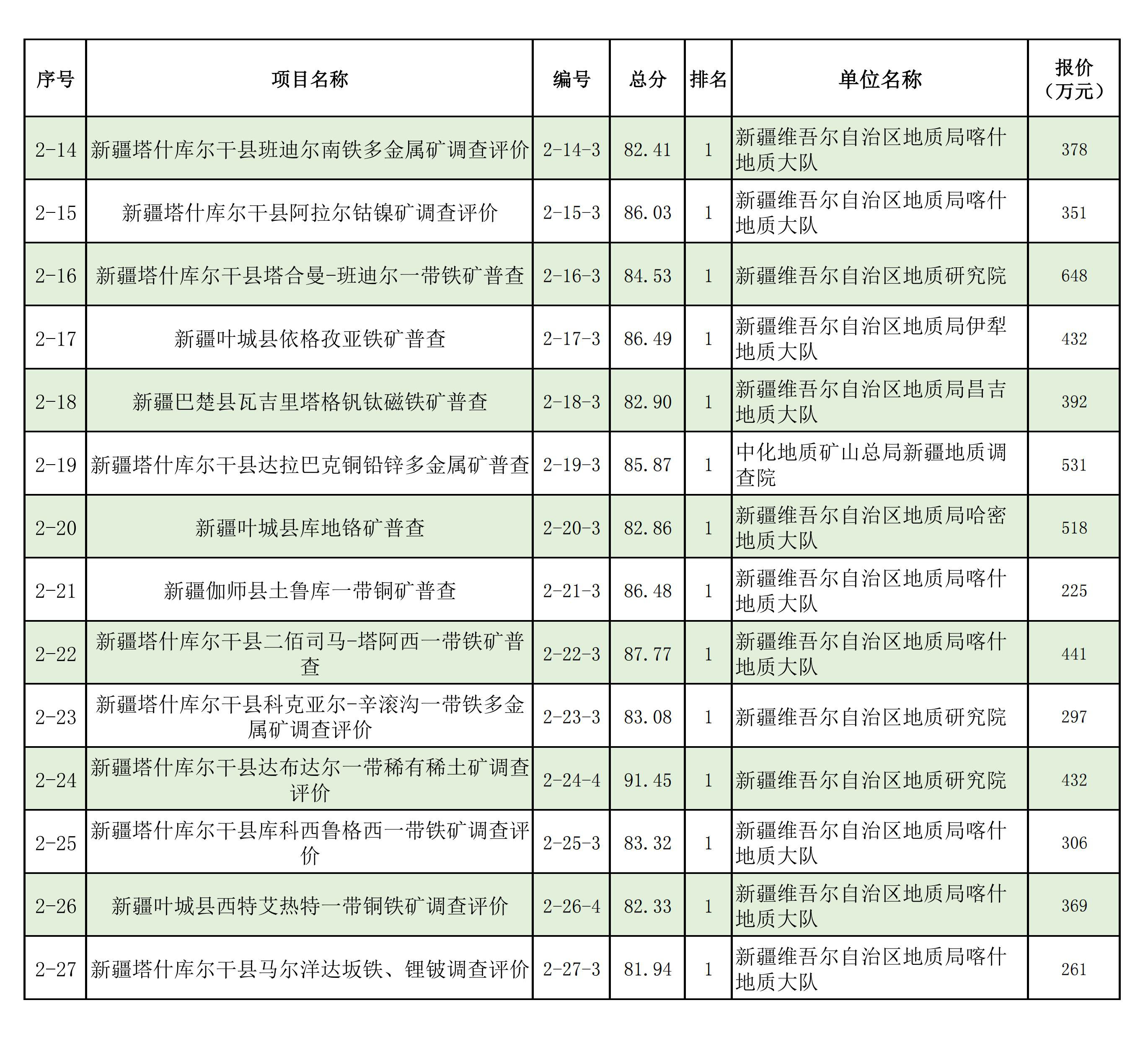 1.2025年新疆維吾爾自治區(qū)財政出資地質(zhì)勘查項目中標(biāo)單位一覽表