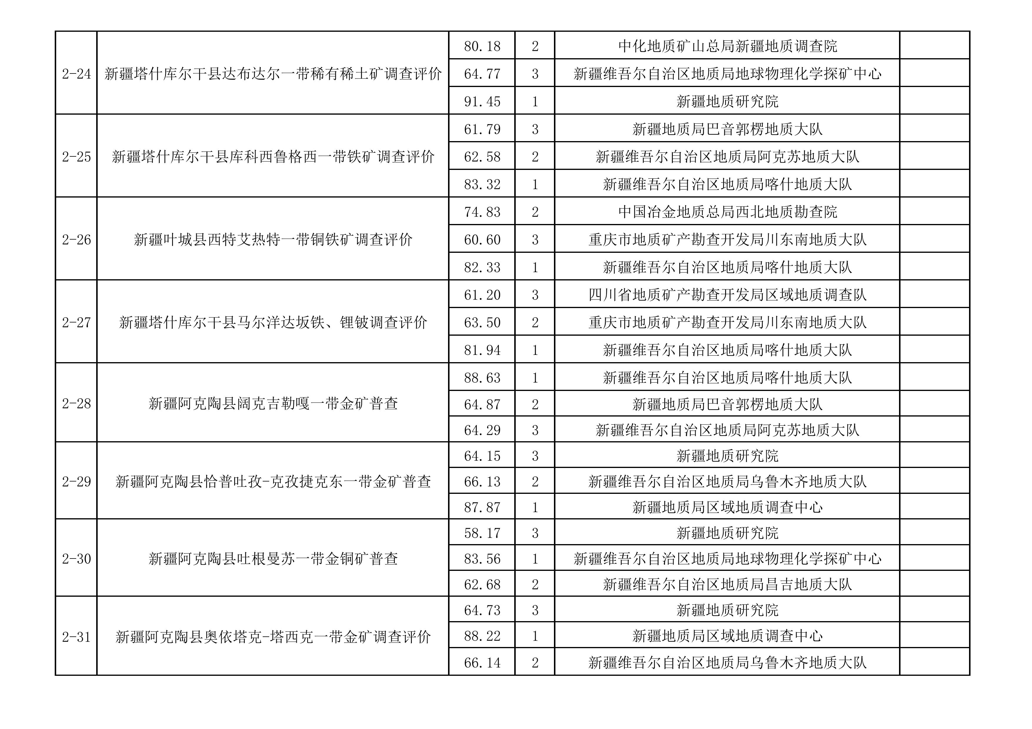 2.2025年新疆維吾爾自治區(qū)財政出資地質(zhì)勘查項目前三名一覽表